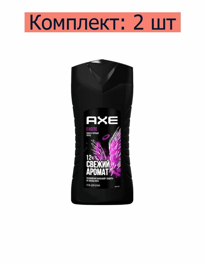 Купить Axe мужской гель для душа Excite, Аромат кокоса и черного перца, Свежесть 12 часов, 250 мл - 2 шт