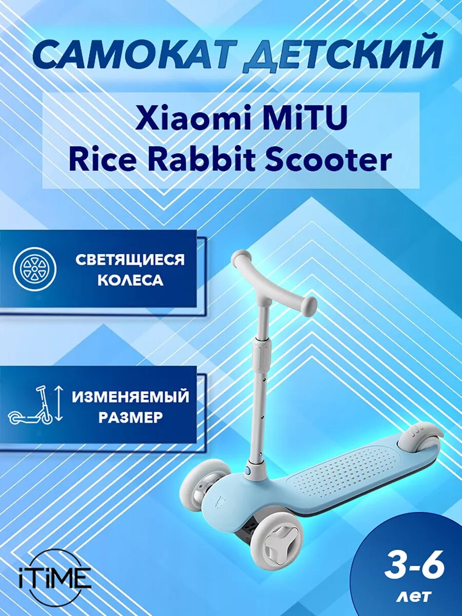 Купить Детский самокат Xiaomi MiTU Rice Rabbit (голубой цвет, с подсветкой колес)