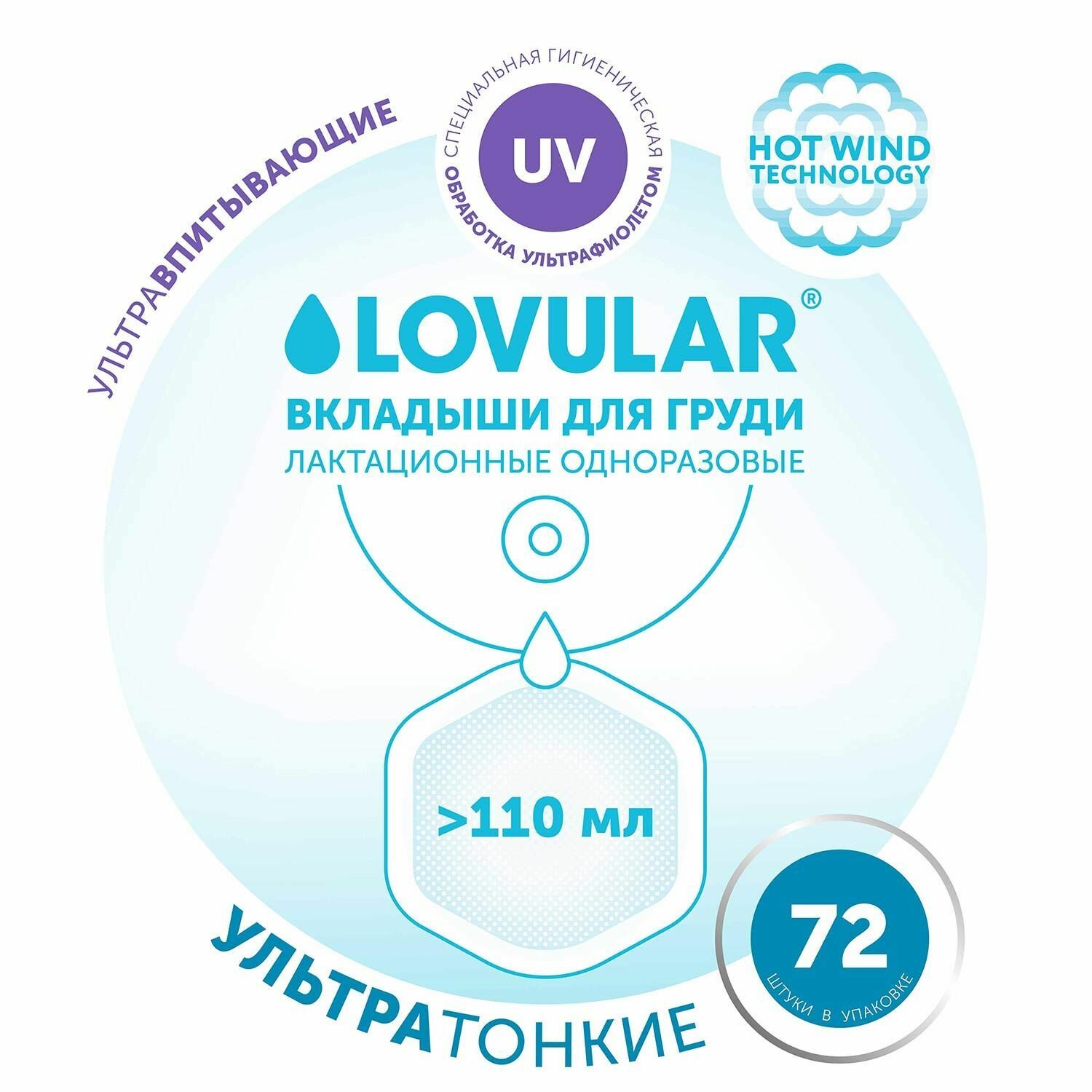 Вкладыши для груди ультратонкие LOVULAR HOT WIND 72 шт/уп