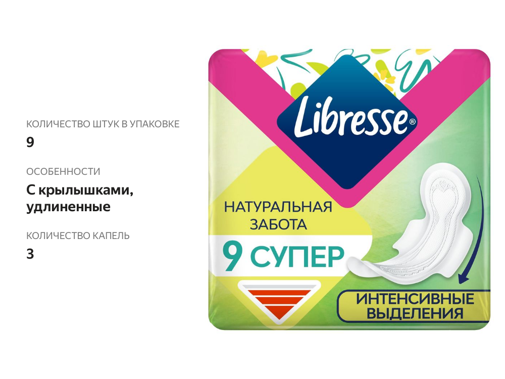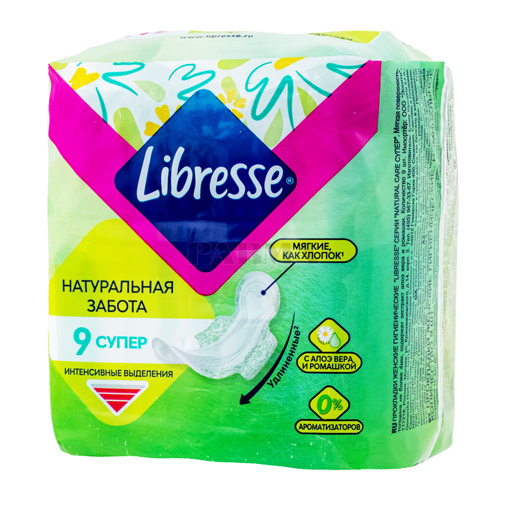 LIBRESSE Прокладки Либресс натуральная забота супер 9 штук в упаковке