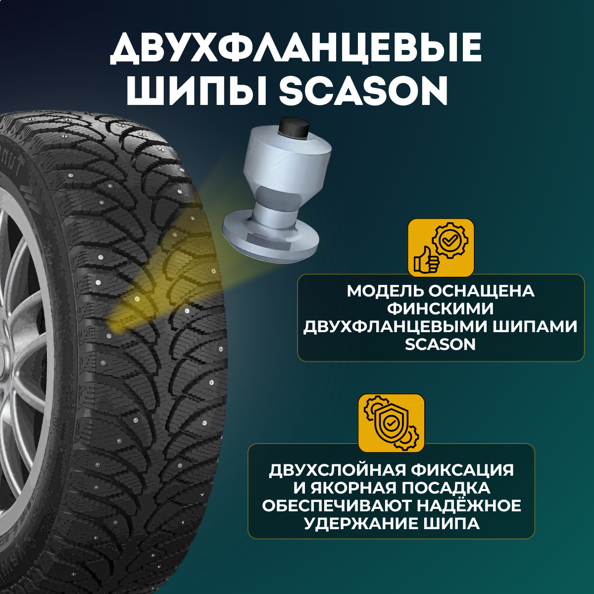 За первый зимний сезон накатал 8000 км, не потерял ни одного шипа. Резина хорошая. |
