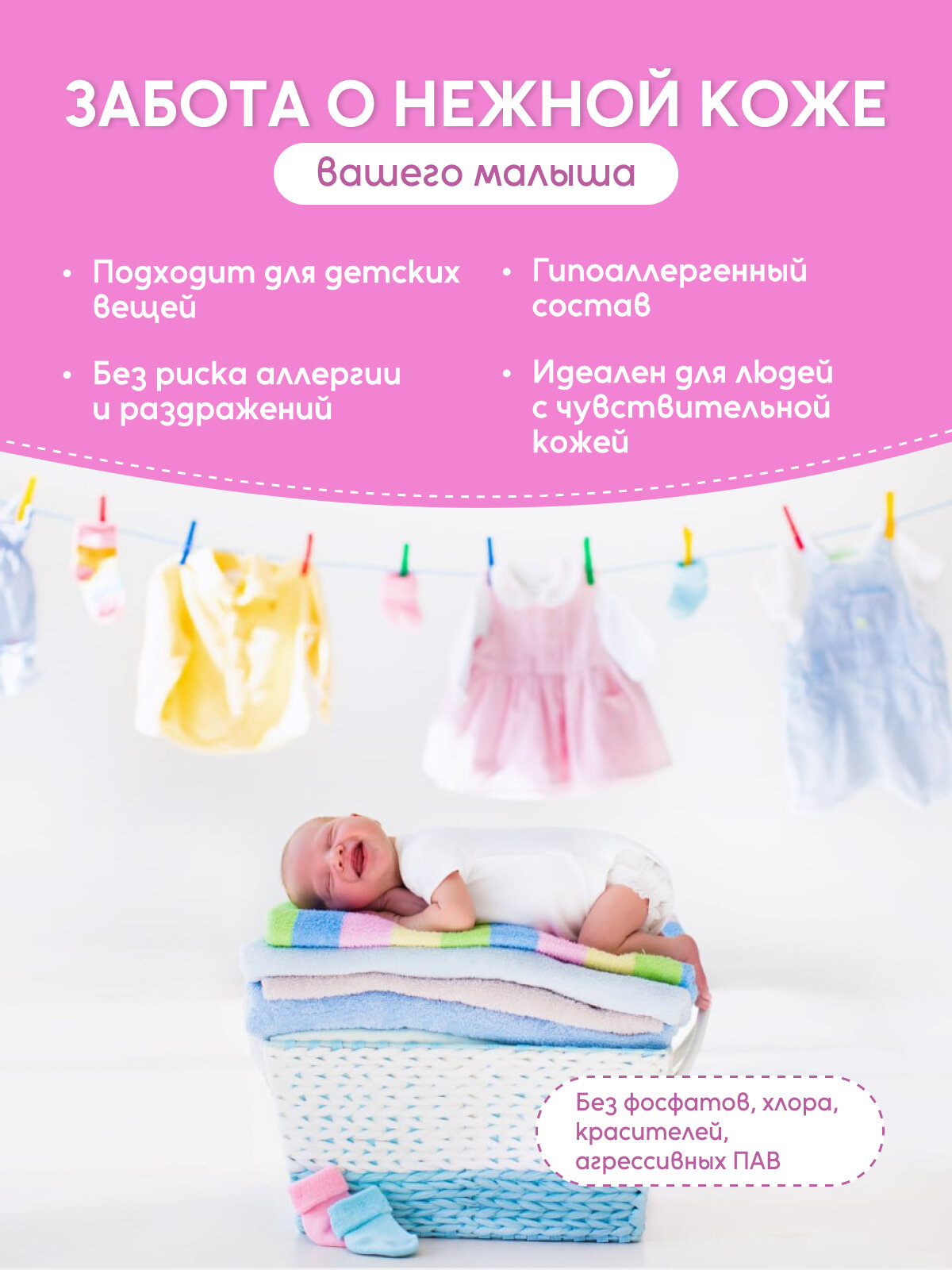 | Плюсы: | Жидкий концентрат, без алергенов, без фосфатов. Безопасен для новорожденных. |