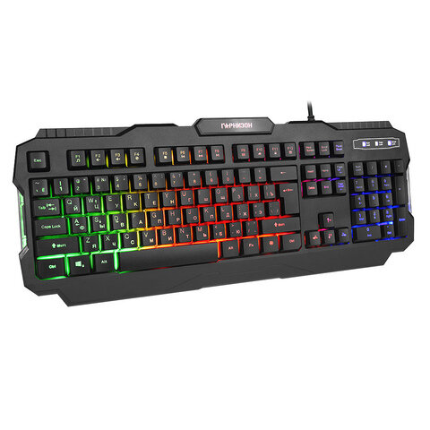 Клавиатура игровая проводная, подсветка "Rainbow", USB, антифантомные клавиши, 12 дополнительных функций, кабель 1.5 м, черный, Гарнизон