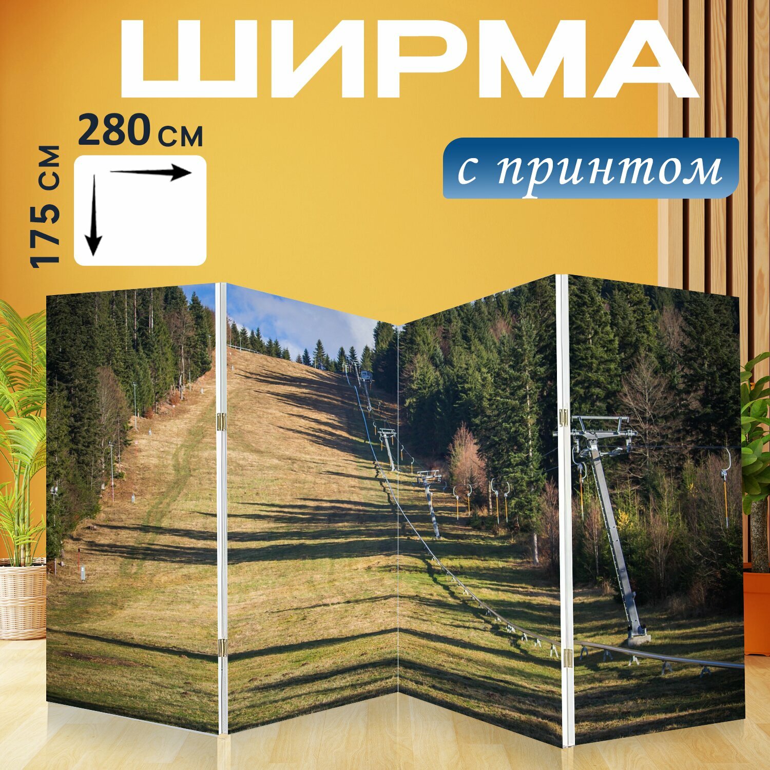 Ширма "Лыжный курорт, борсек, трансильвания" перегородка для зонирования комнаты с принтом 280x175 см. на холсте интересное: