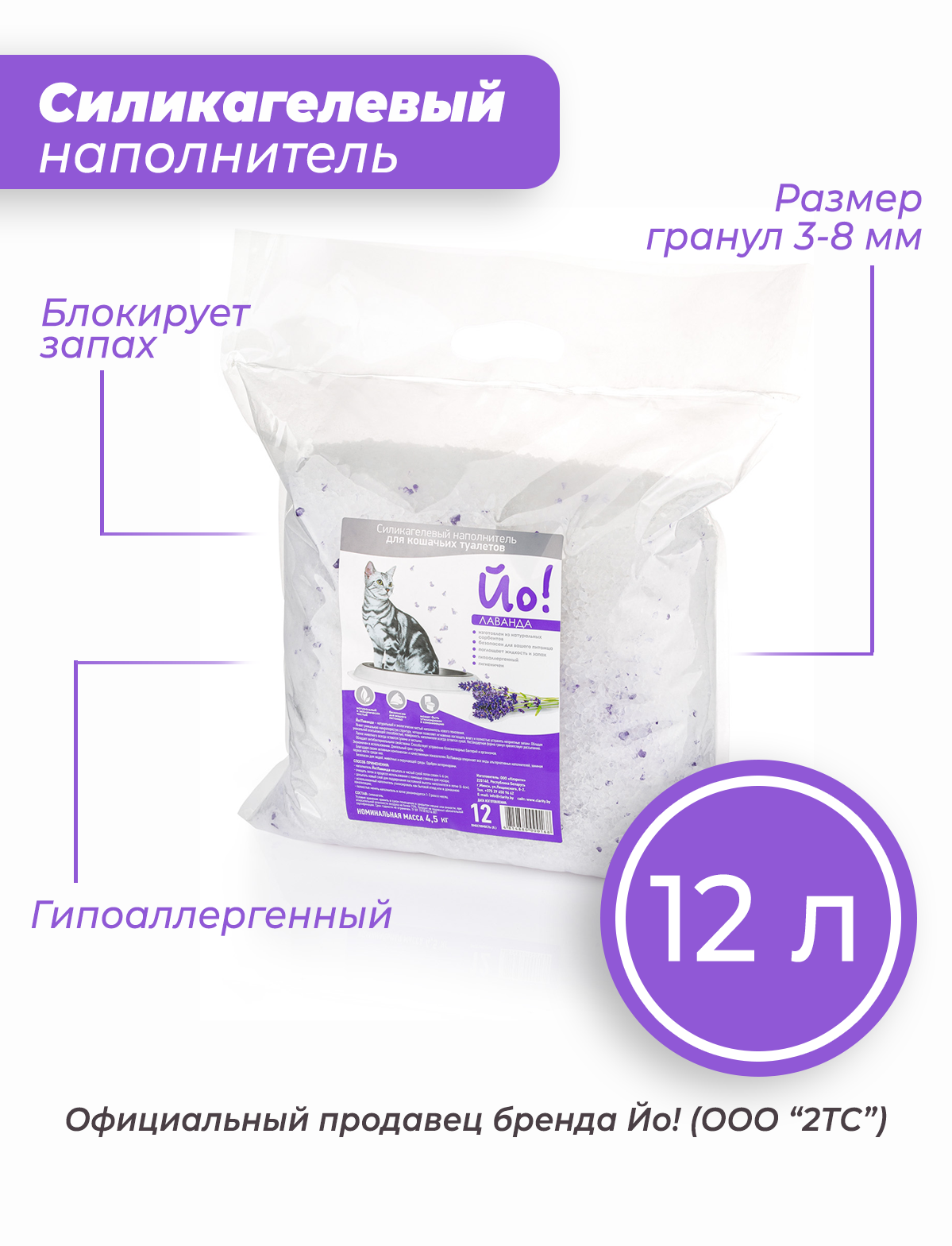 Купить Силикагелевый наполнитель для кошачьего туалета Йо! Лаванда, 12 л/4,5 кг