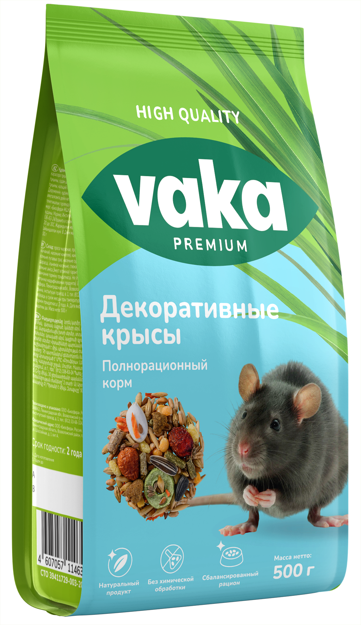 Вака Корм "High Quality" для крыс и мышей, 0.5 кг