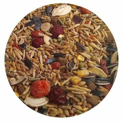 Ессть орехи, шоколад, сухая марковь и др. добавки Очень хороший корм. Много разных добавок. |