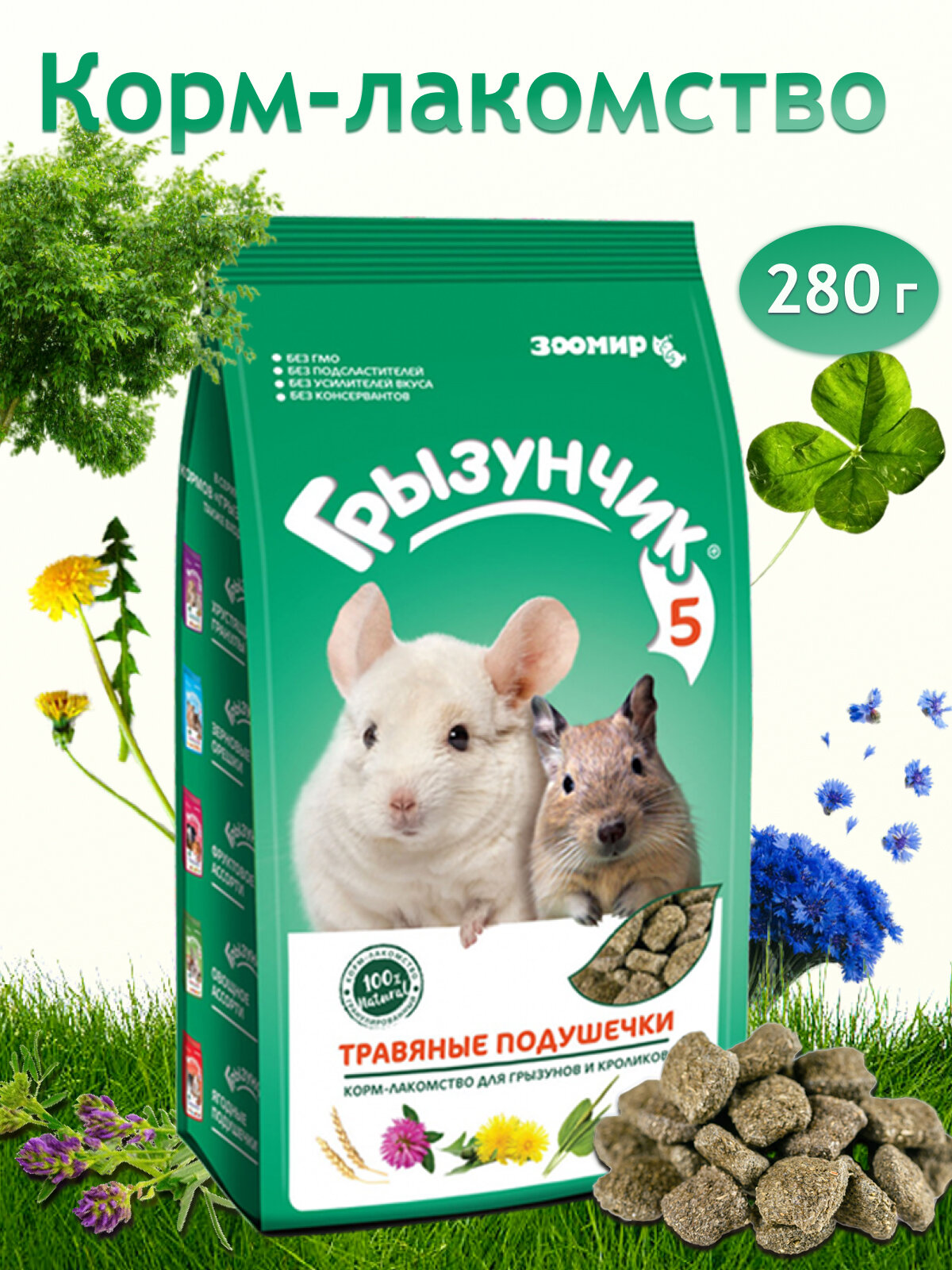 Корм Зоомир Грызунчик 5 Травяные подушечки для грызунов 280г 141.460