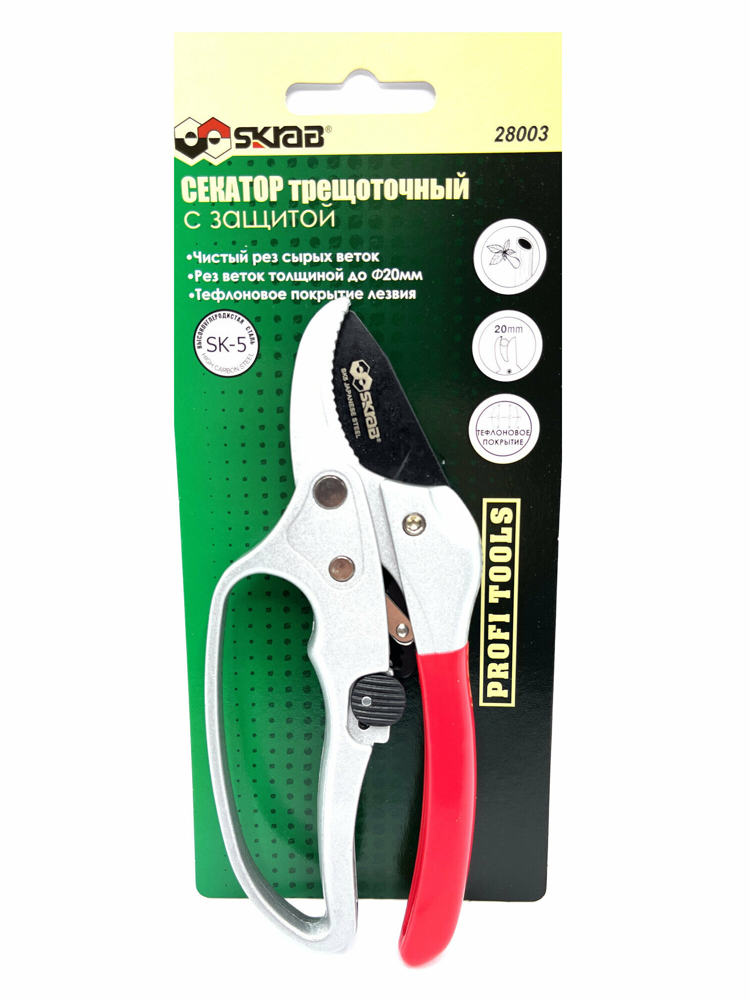 Секатор садовый 203 мм Сталь SK5 Japanese Steel храповой механизм TEFLON Skrab 28003