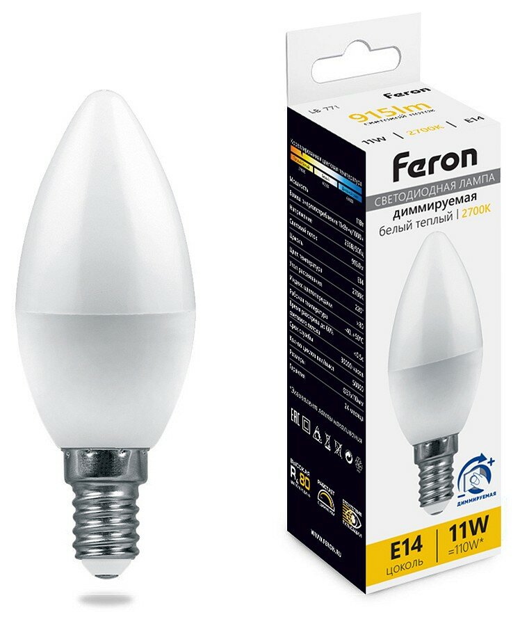 Лампа светодиодная диммируемая Feron E14 11W 2700K матовая LB-771 51055, цвет Белый/, материал / интересное: