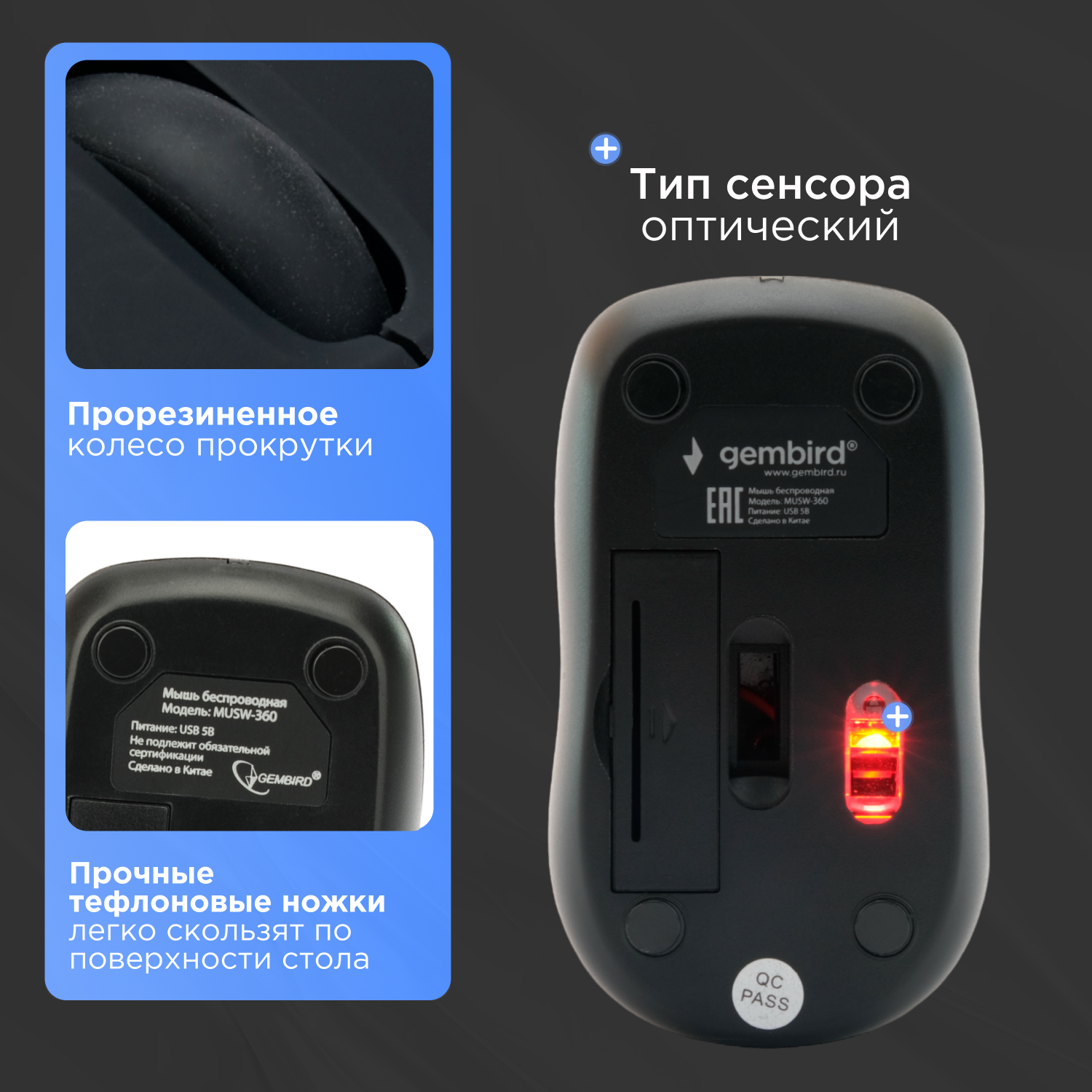 Компьютерная мышь Gembird MUSW-360 (15596)