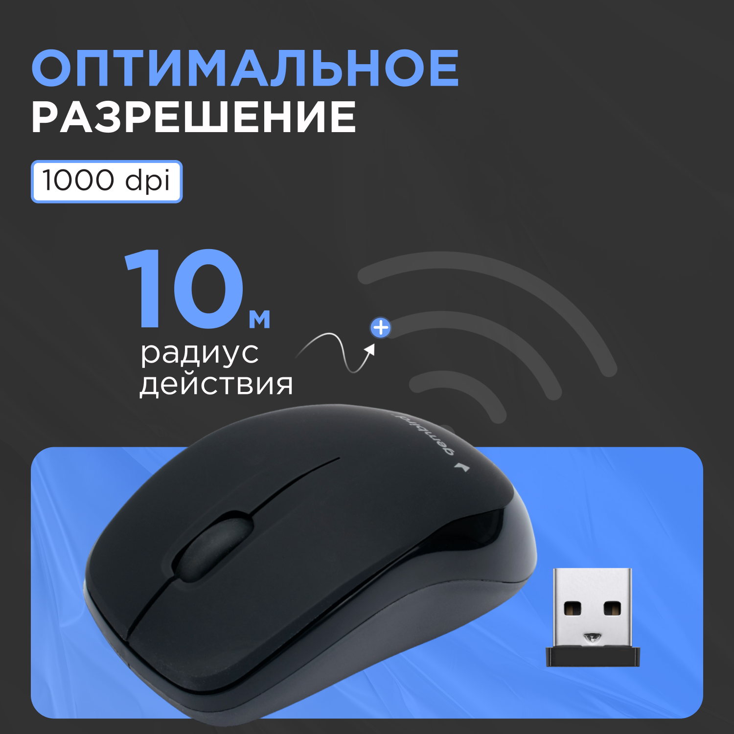 Мышь беспроводная Gembird MUSW-360, 2.4ГГц, черный, 2 кнопки+колесо-кнопка, 1000 DPI, батарейки в комплекте, блистер
