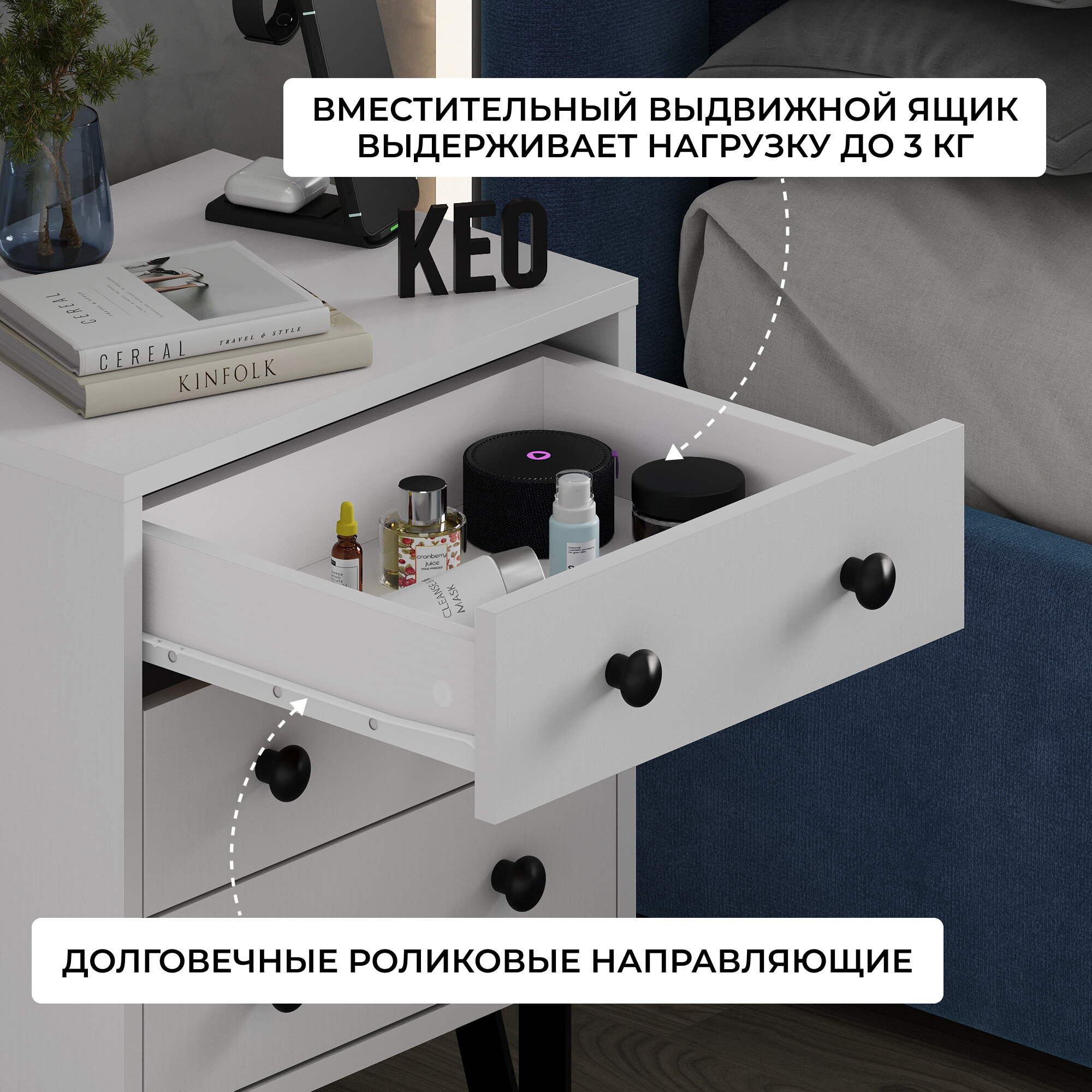 Тумба прикроватная "КЕО" с выдвижными ящиками, 53,4х45х35 см, белая