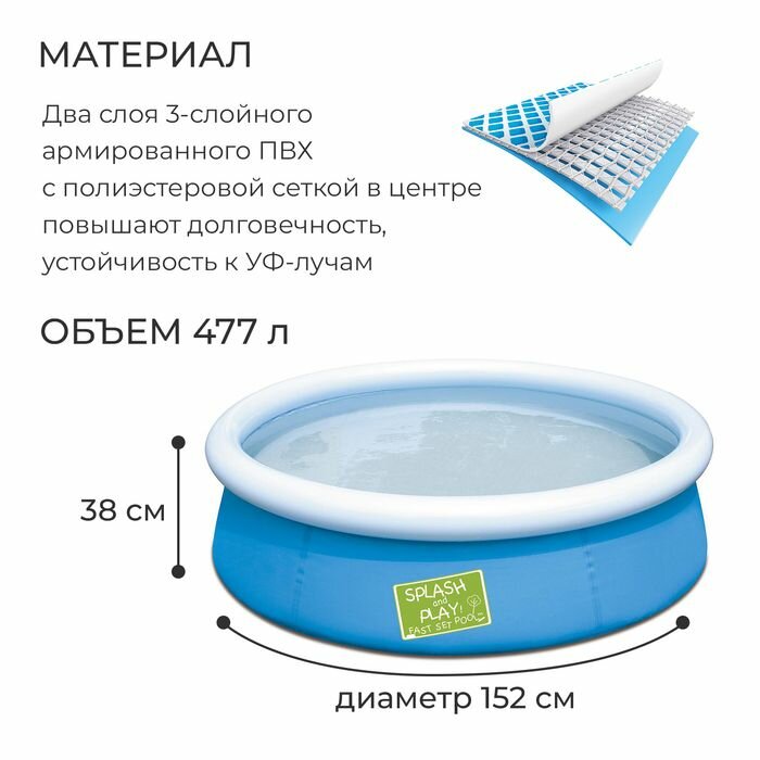 Бассейн надувной Fast Set, 152 х 38 см, от 2 лет, 57241 . интересное: