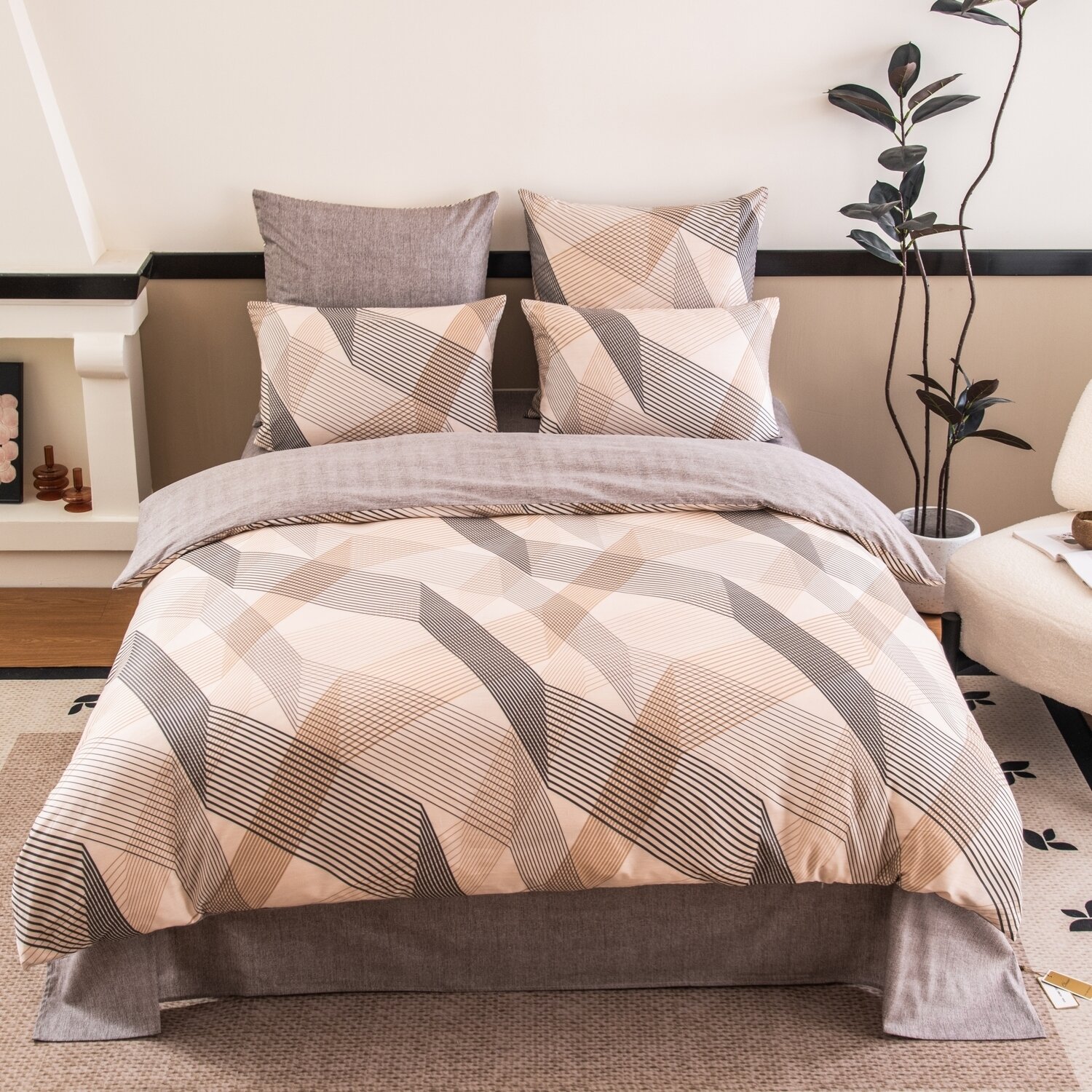 Постельное белье Семейное геометрия, сатин люкс, 100% хлопок, 4 наволочки на молнии 50x70 70х70 / Комплект постельного белья Семейный желтый