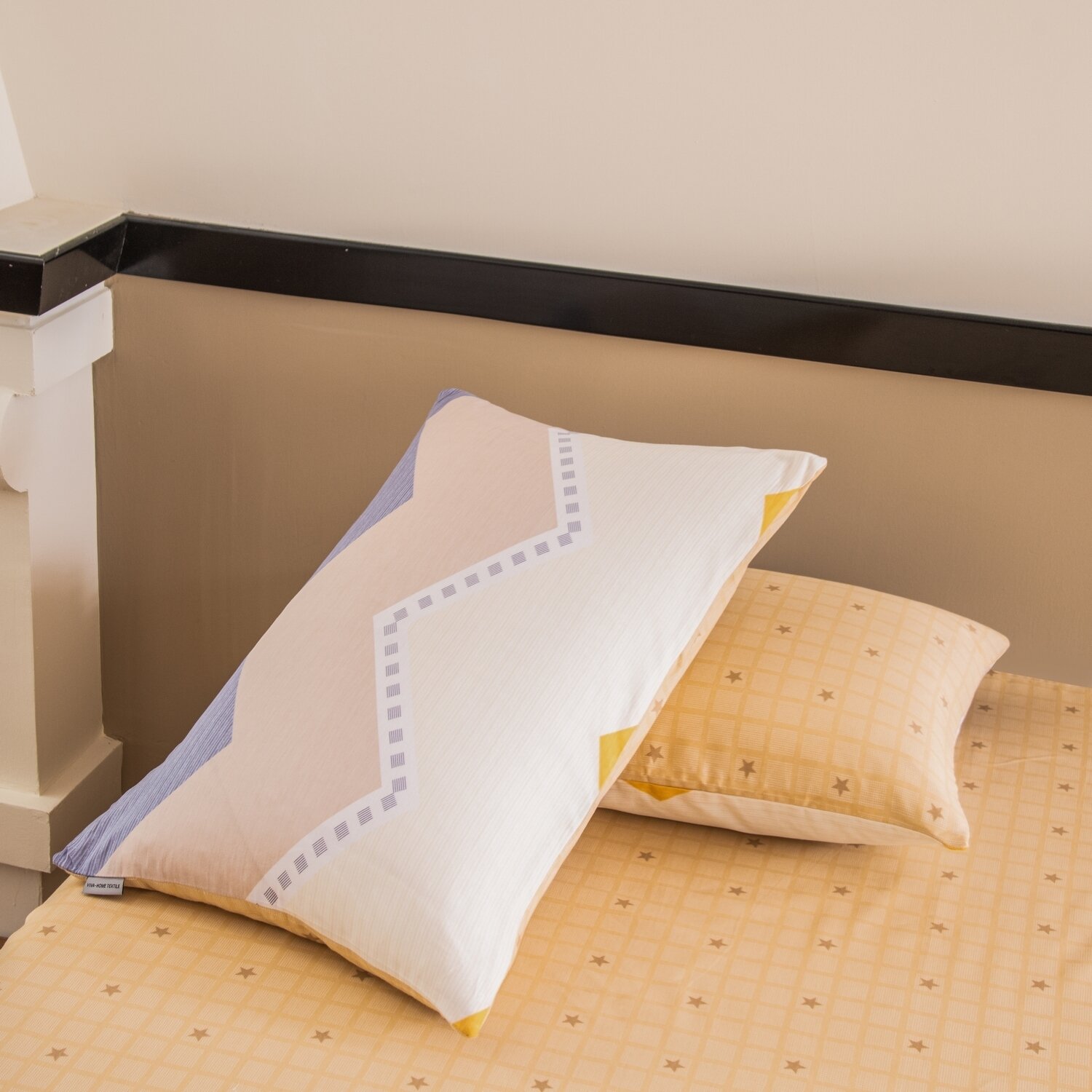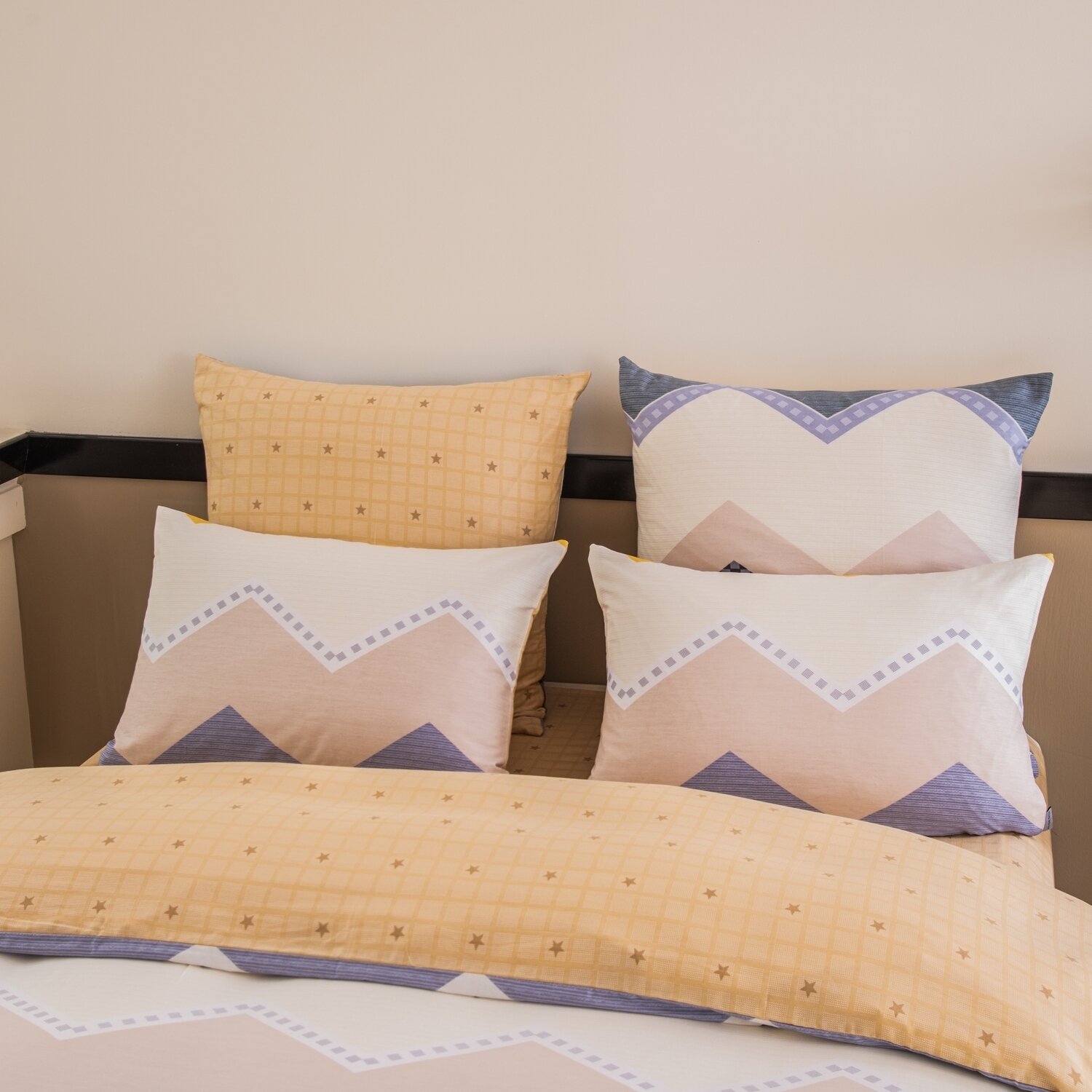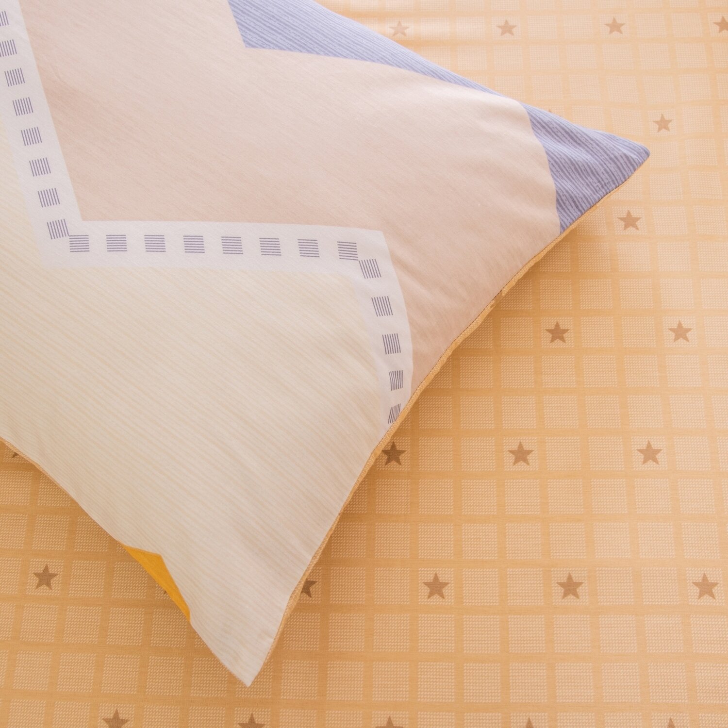 Постельное белье Семейное геометрия, сатин люкс, 100% хлопок, 4 наволочки на молнии 50x70 70х70 / Комплект постельного белья Семейный желтый