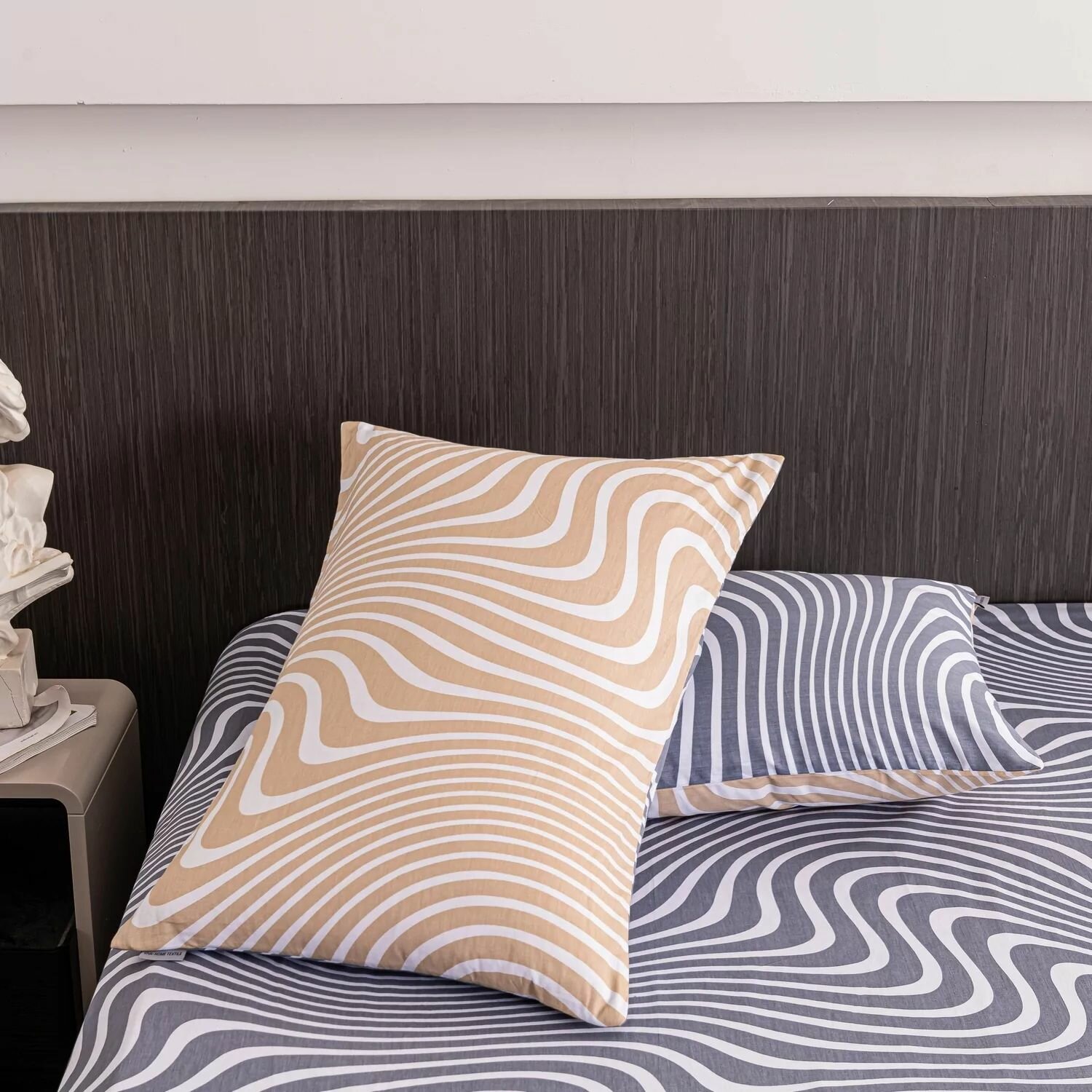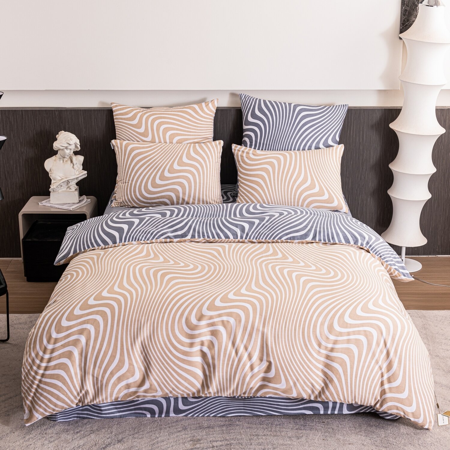Постельное белье Семейное геометрия, сатин люкс, 100% хлопок, 4 наволочки на молнии 50x70 70х70 / Комплект постельного белья Семейный желтый
