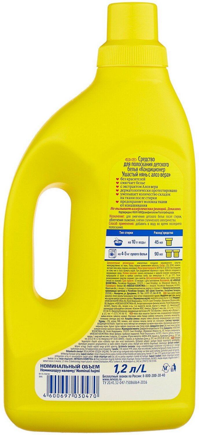 Ушастый нянь Кондиционер для детского белья "Ушастый нянь", с алоэ вера, 1,2 л
