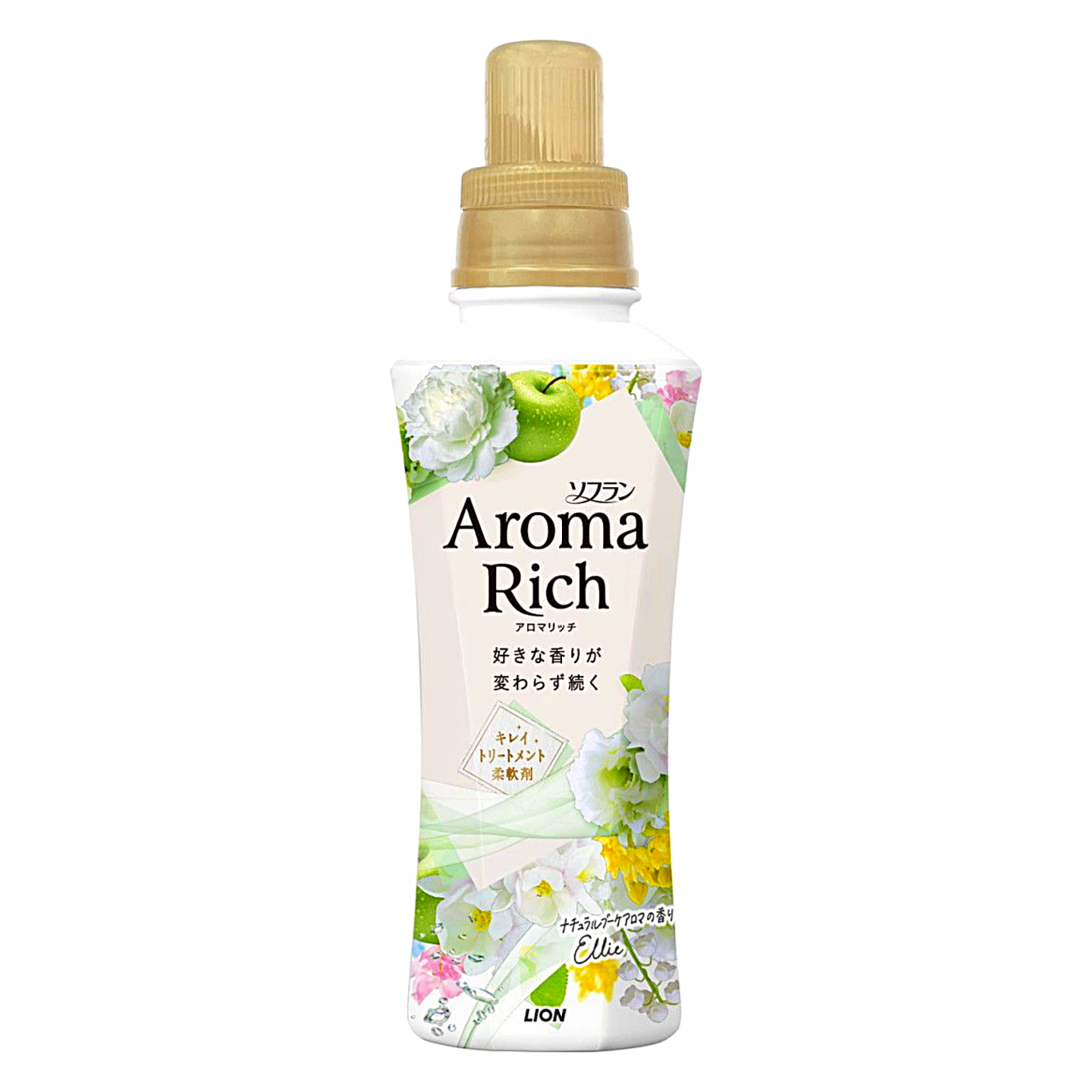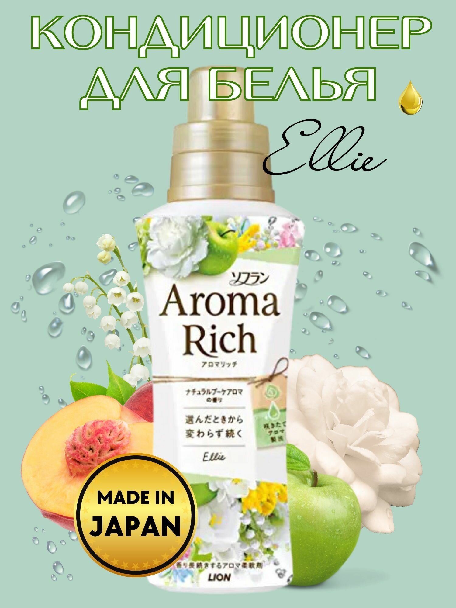 LION Кондиционер для белья Элли формула сохранения неизменного аромата и красоты тканей / с натуральными маслами Aroma Rich Ellie 480 мл