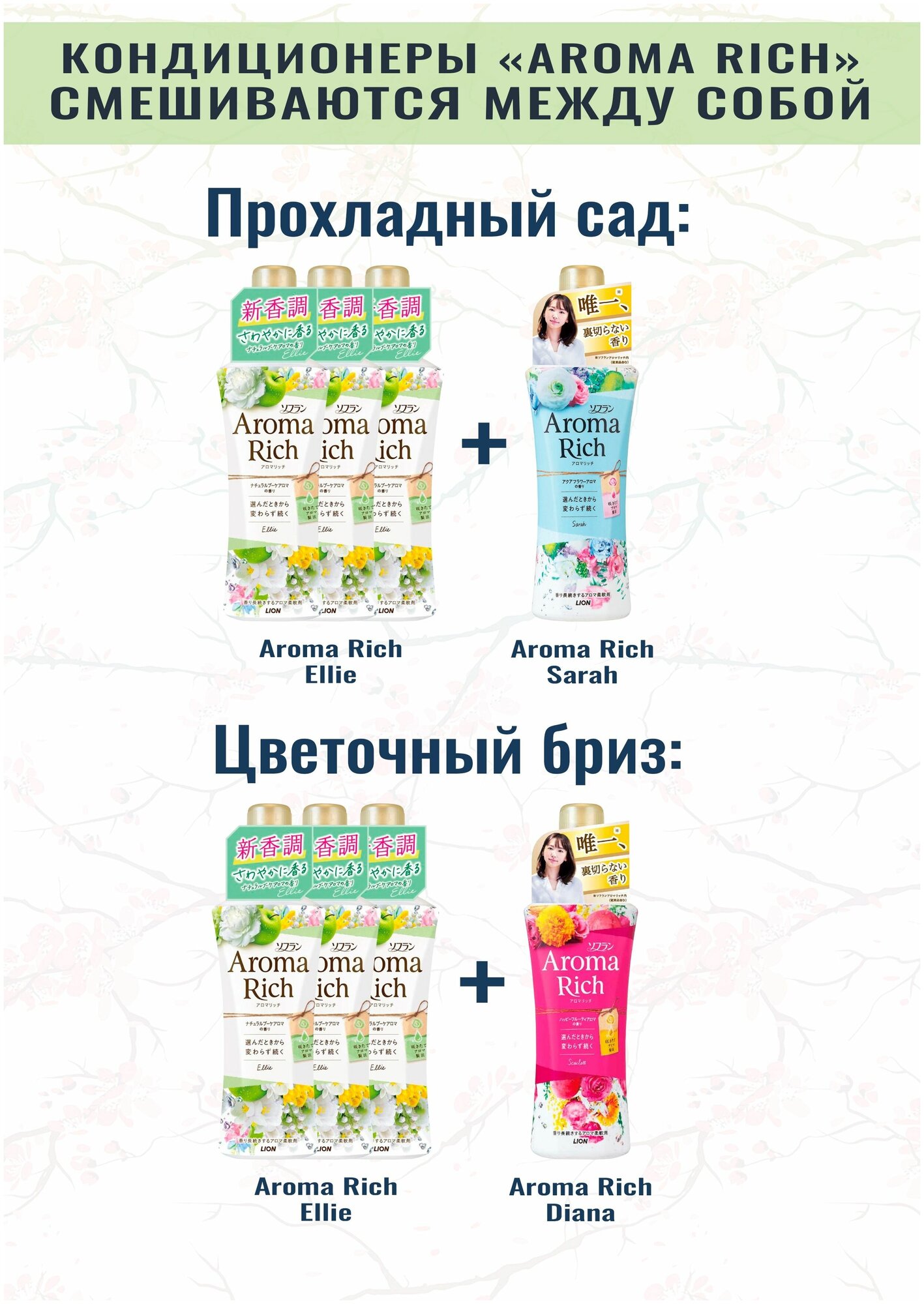 LION Кондиционер для белья Элли формула сохранения неизменного аромата и красоты тканей / с натуральными маслами Aroma Rich Ellie 480 мл