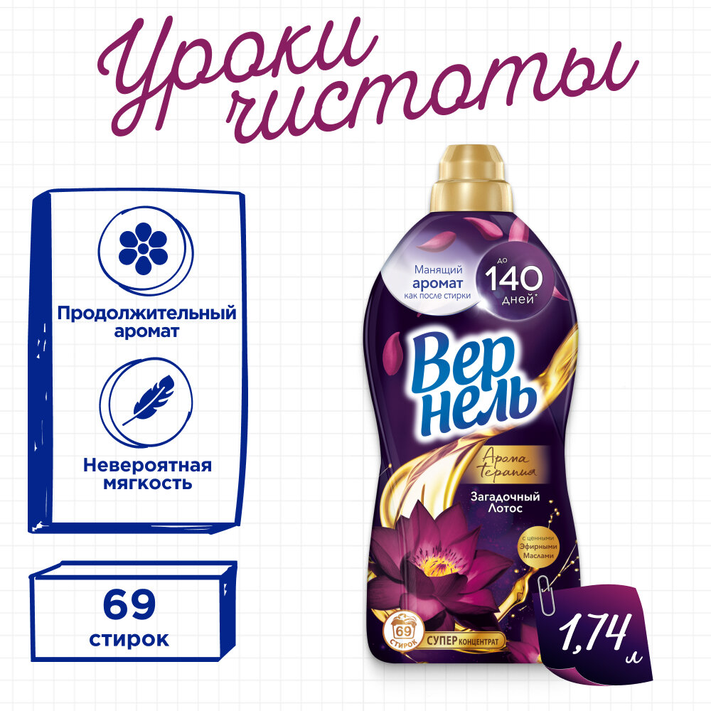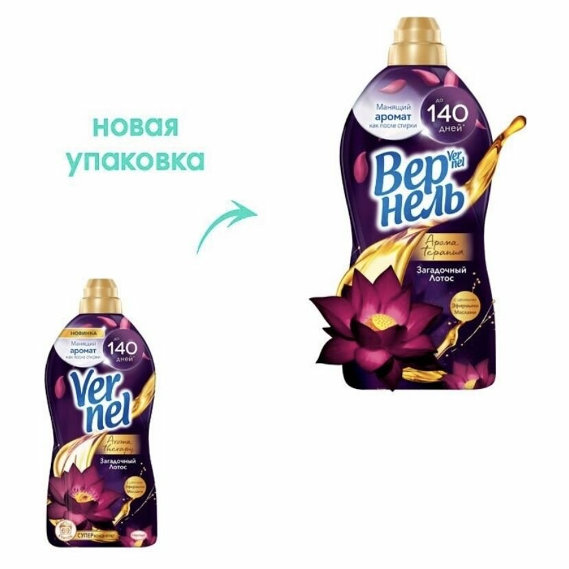 Купить Концентрированный кондиционер ополаскиватель для стирки белья Vernel Ароматерапия Загадочный лотос, 1,74л (69 стирок)