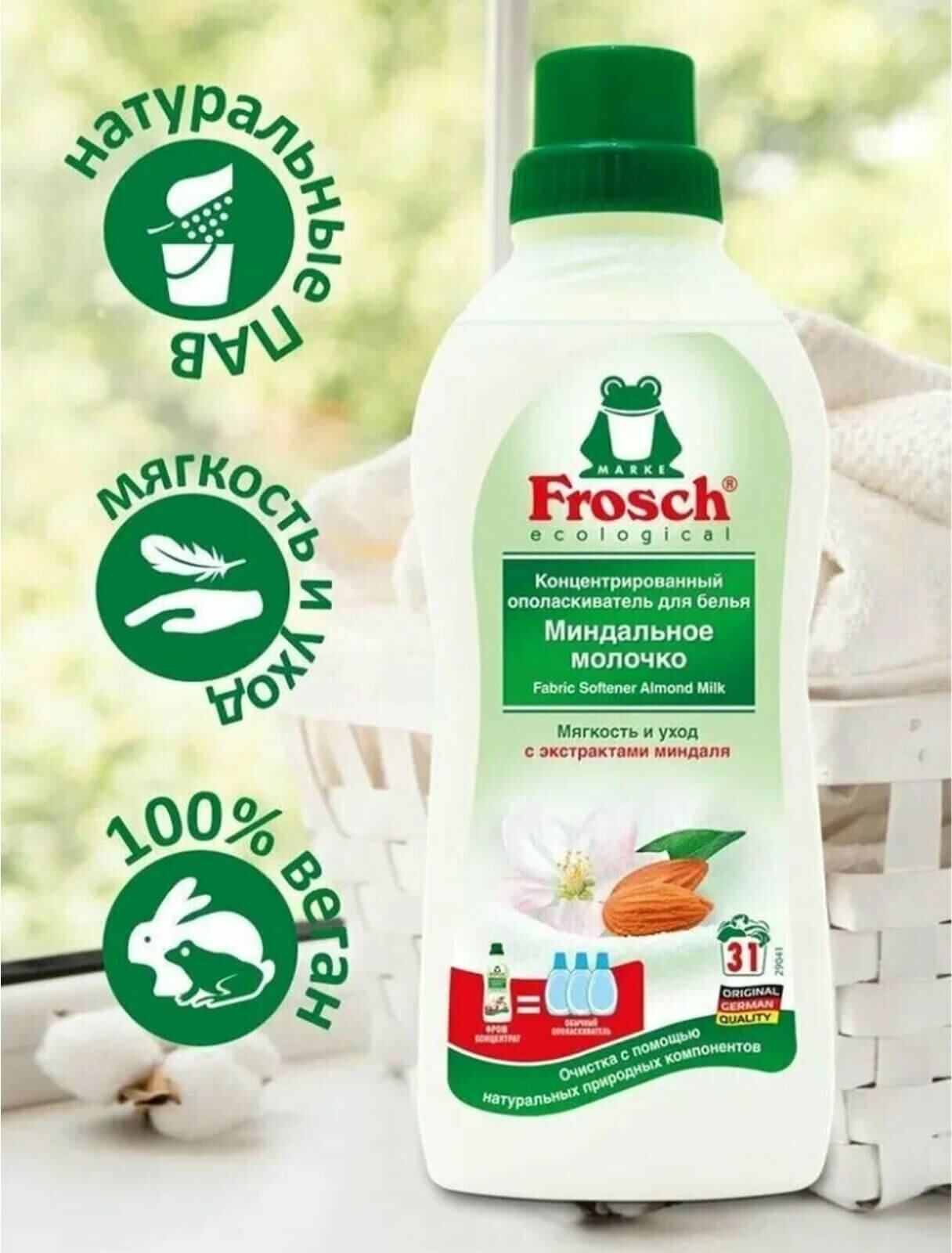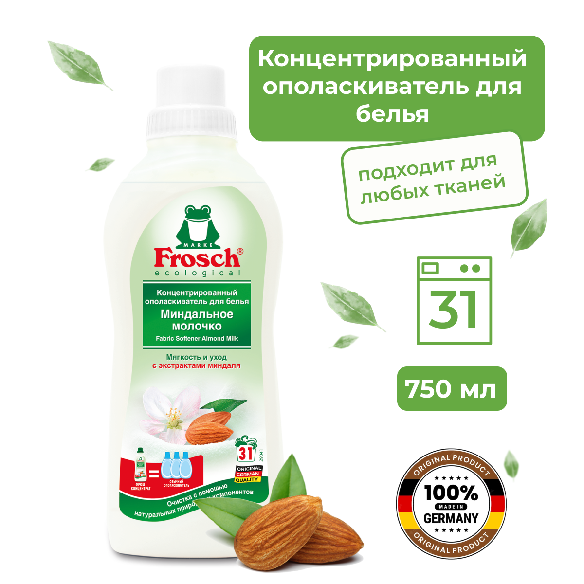 Frosch Концентрированный ополаскиватель для белья (миндальное молочко), 0,75 л