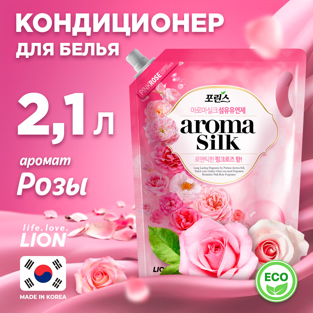 LION Кондиционер для белья с ароматом розы «АROMA SILK», мягкая упаковка, 2100 мл