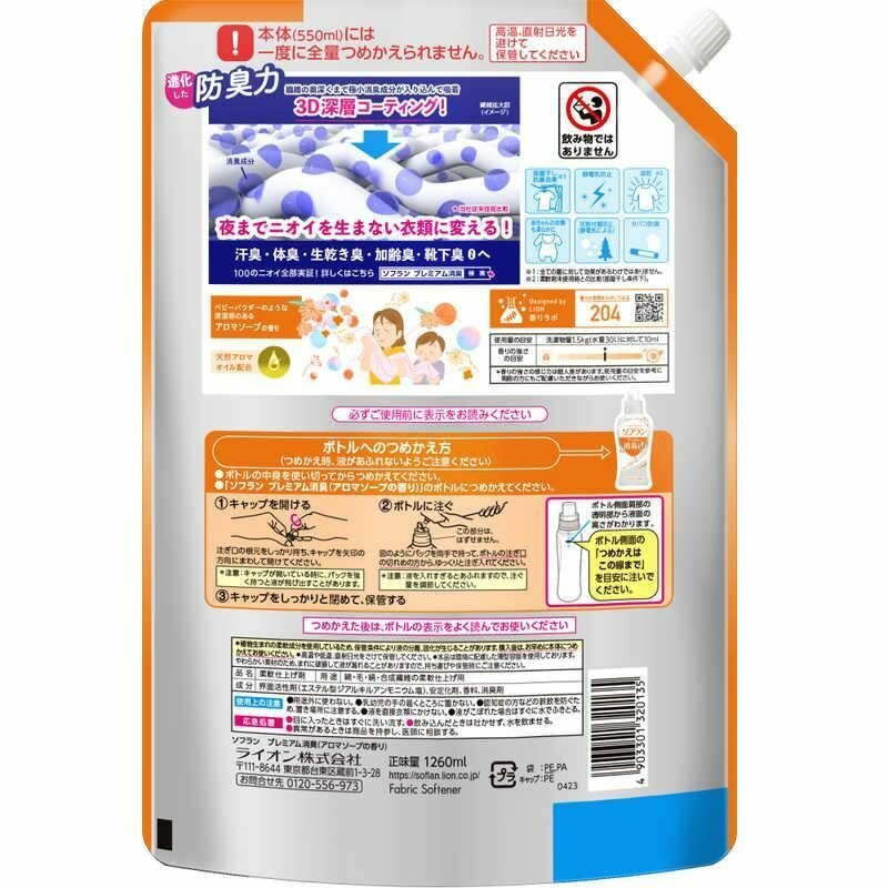LION Кондиционер для белья SOFLAN с мощным антибактериальным эффектом для защиты от неприятного запаха Premium Deodorizer 204 - натуральный аромат цветочного мыла, 380 мл