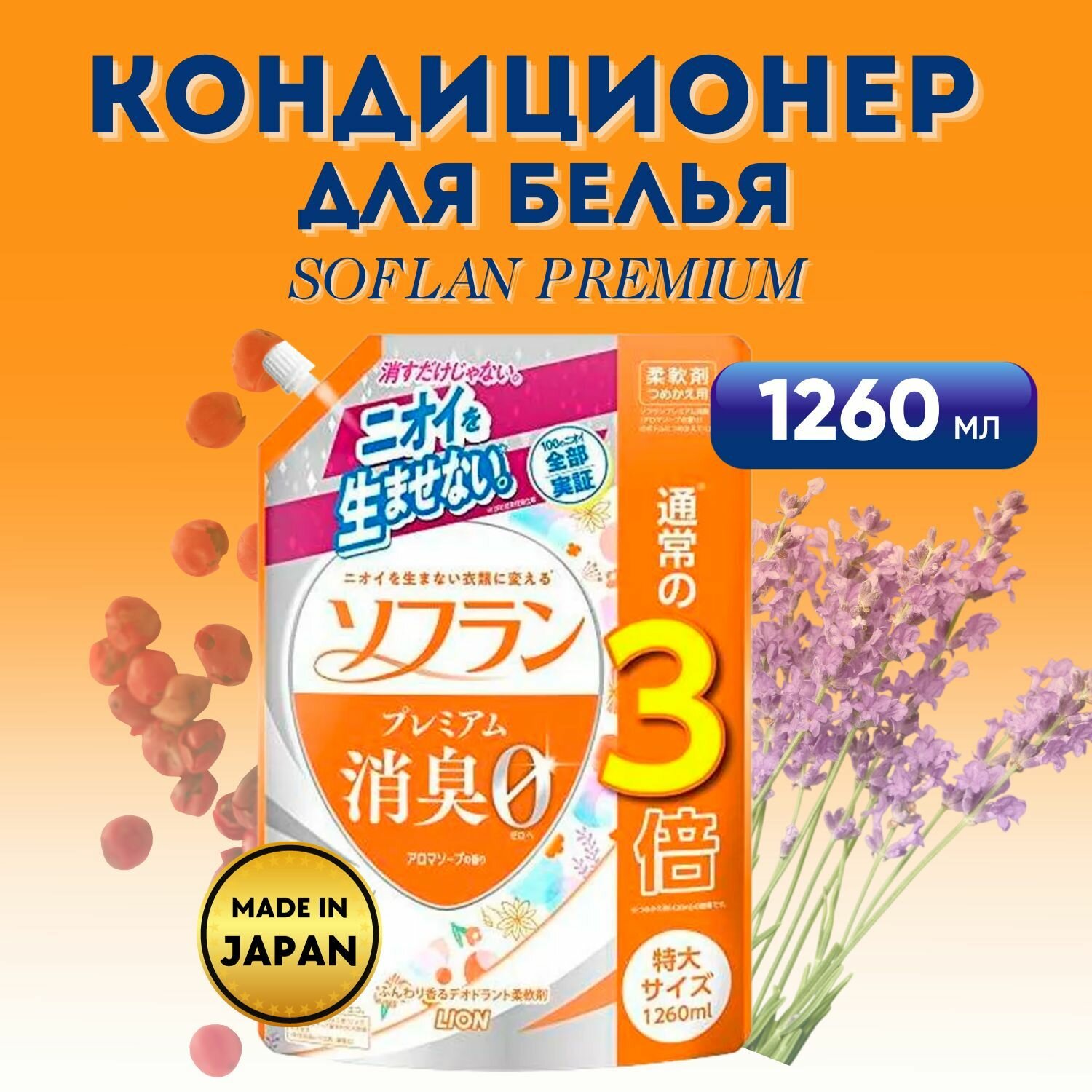 LION Кондиционер для белья SOFLAN Premium Deodorizer Zero- аромат роз,1260мл