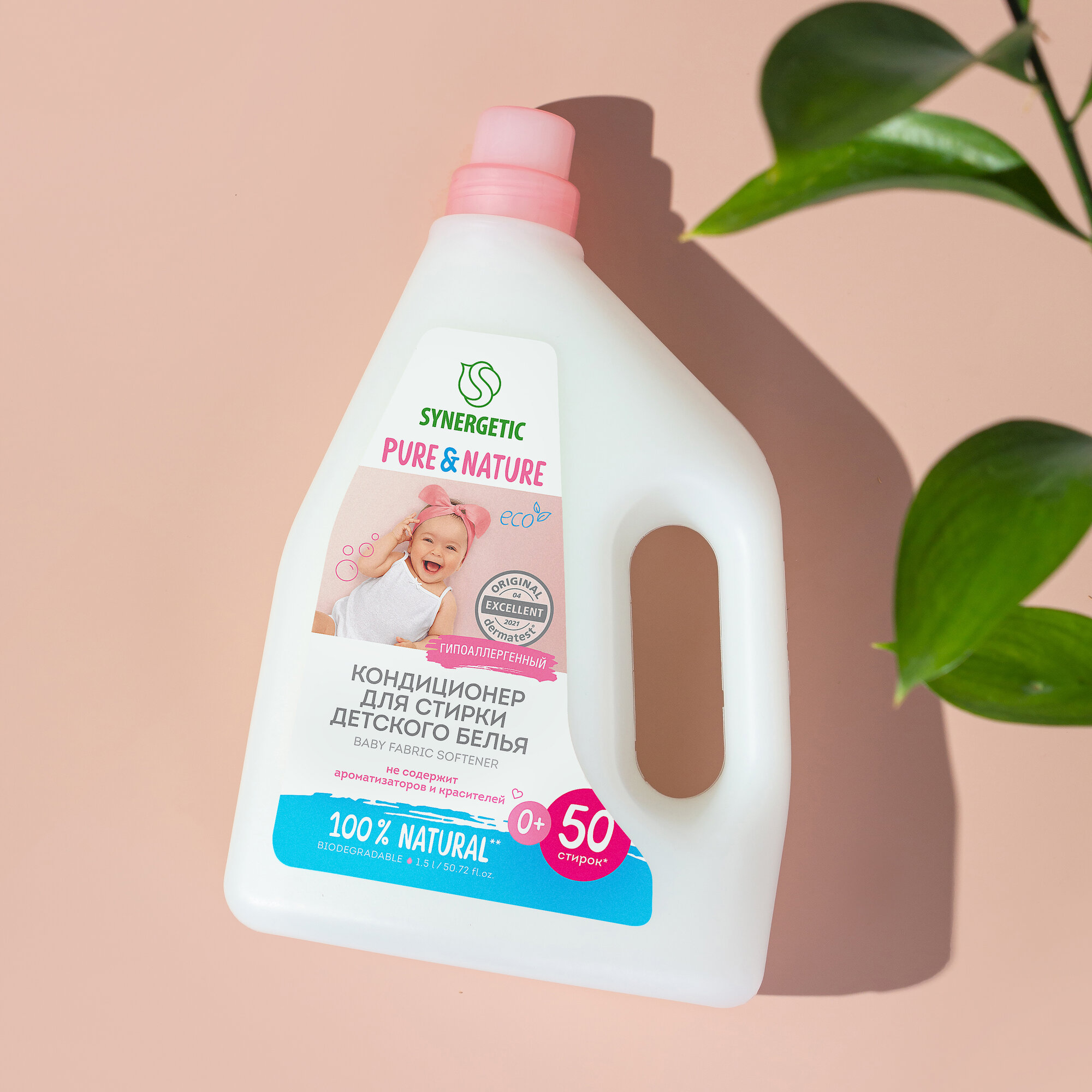 Synergetic Кондиционер-ополаскиватель для детского белья, 2 штуки, нежное прикосновение, 1,5 л, 50 стирок 4088