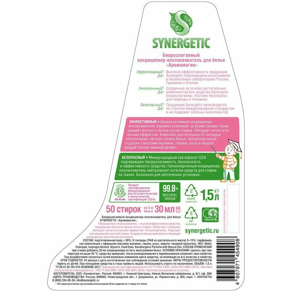 Кондиционер-ополаскиватель для белья Synergetic "Аромамагия", 1,5 л, 50 стирок