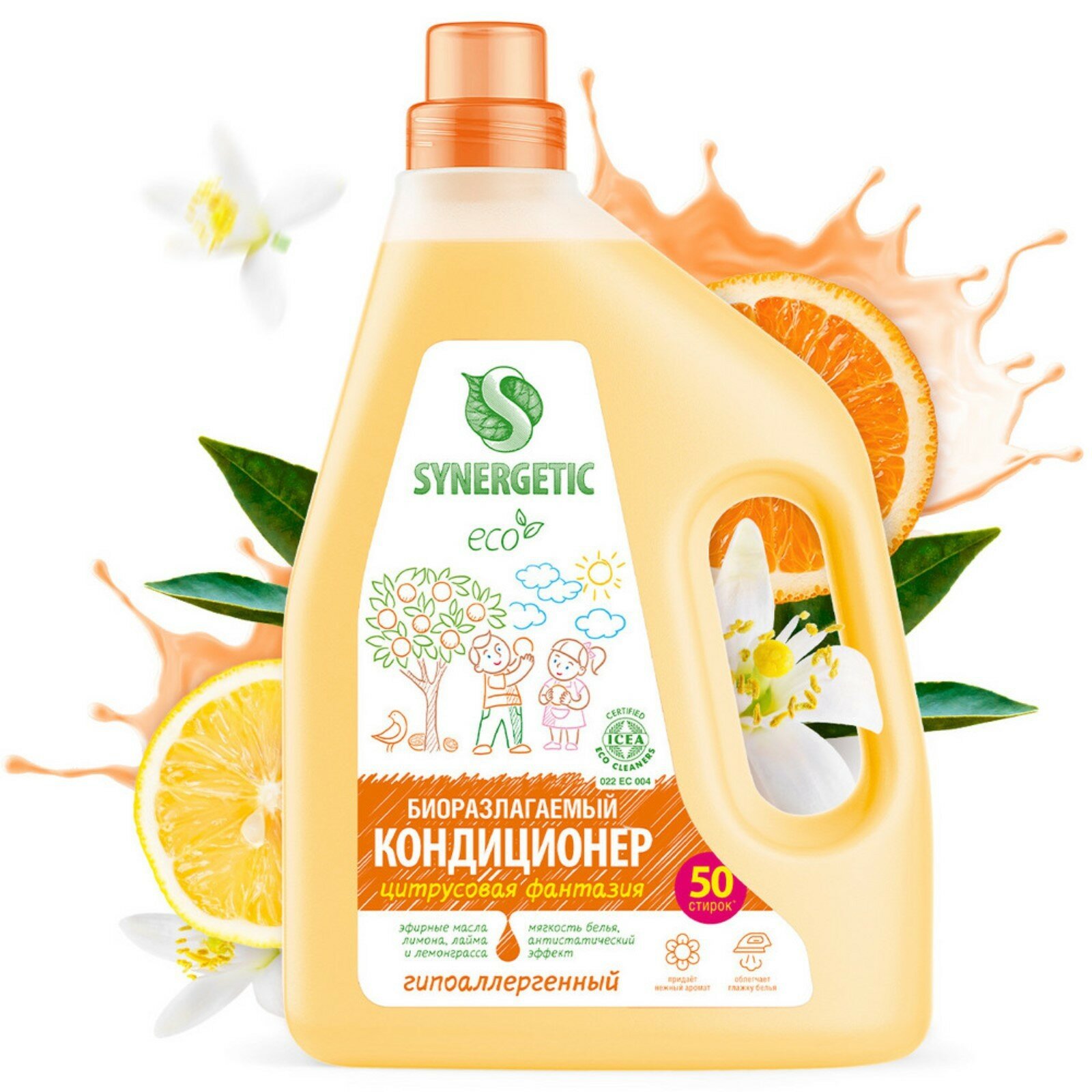 Кондиционер-ополаскиватель для белья SYNERGETIC "Цитрусовая фантазия" гипоаллергенный, 1,5л, 50 стирок