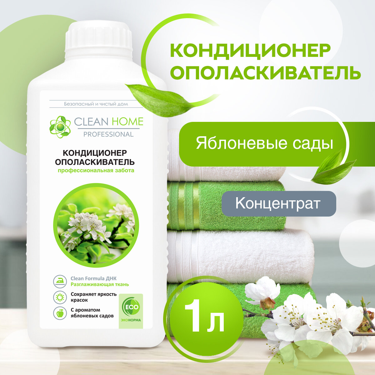 ЭКО Кондиционер ополаскиватель для белья Clean Home с ароматом яблоневого сада 1000 мл
