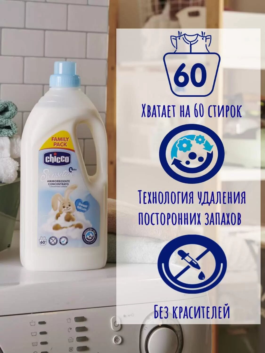 Купить Кондиционер для стирки детского белья Chicco Sweet Talcum концентрированный гипоаллергенный 1,5л 0+