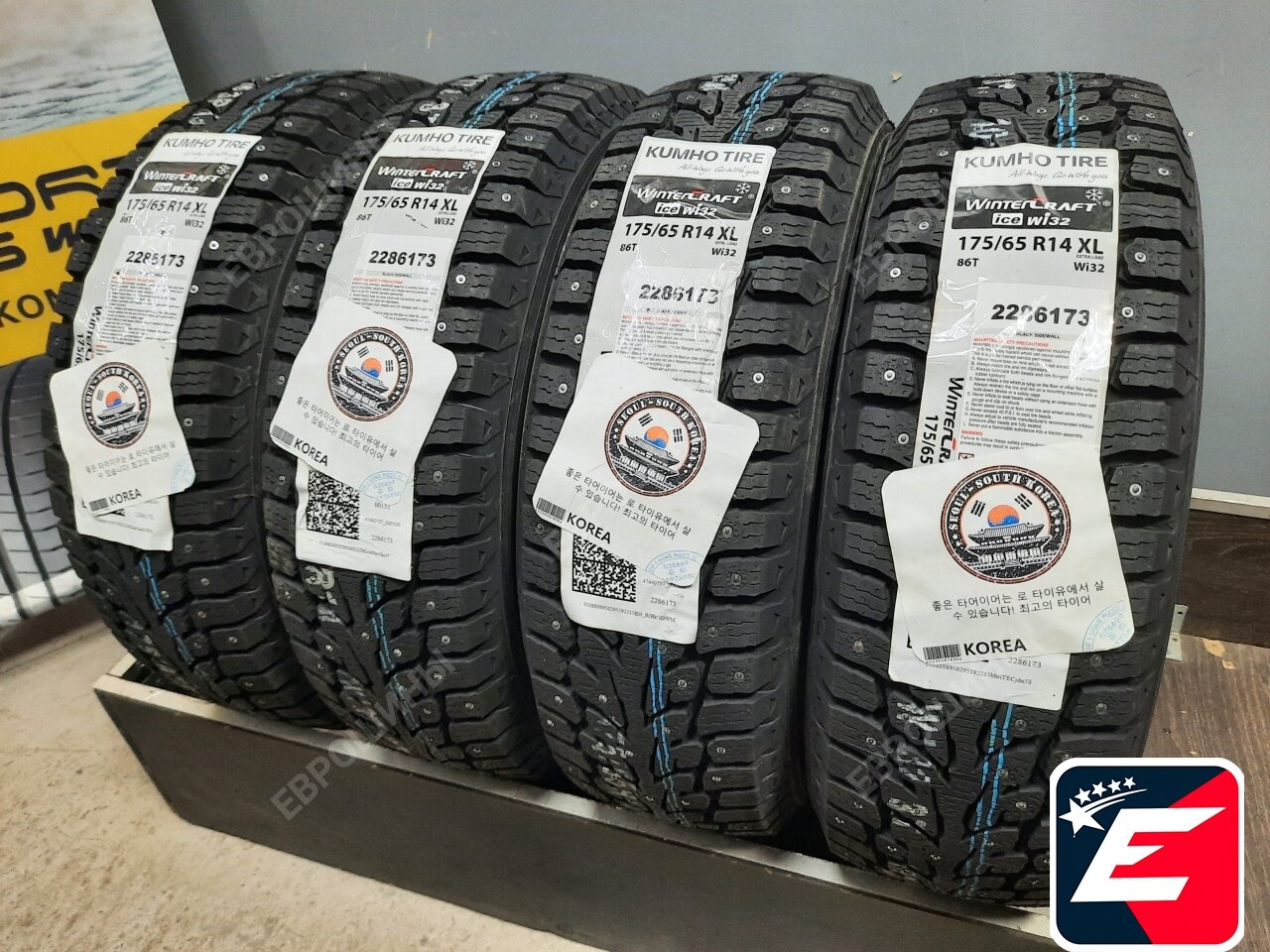 Шины зимние для легковых автомобилей Кумхо 185/60/15 T 88 WI-32 XL Ш, шипованные, индикатор износа