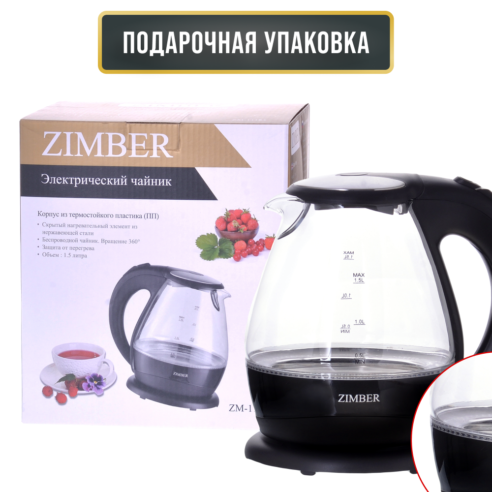 Электрический чайник 1,5л с подсветкой ZIMBER