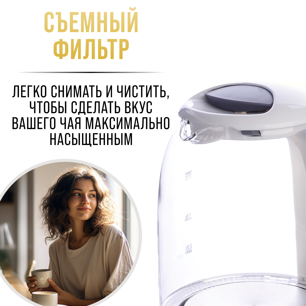 СохранитьЭлектрический чайник ZIMBER, 1,7л, стеклянный с подсветкой 11252 интересное: