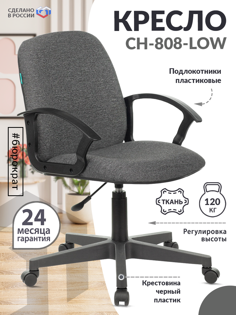 Кресло офисное CH-808-LOW серый, ткань / Компьютерное кресло для оператора, персонала, сотрудника, для дома