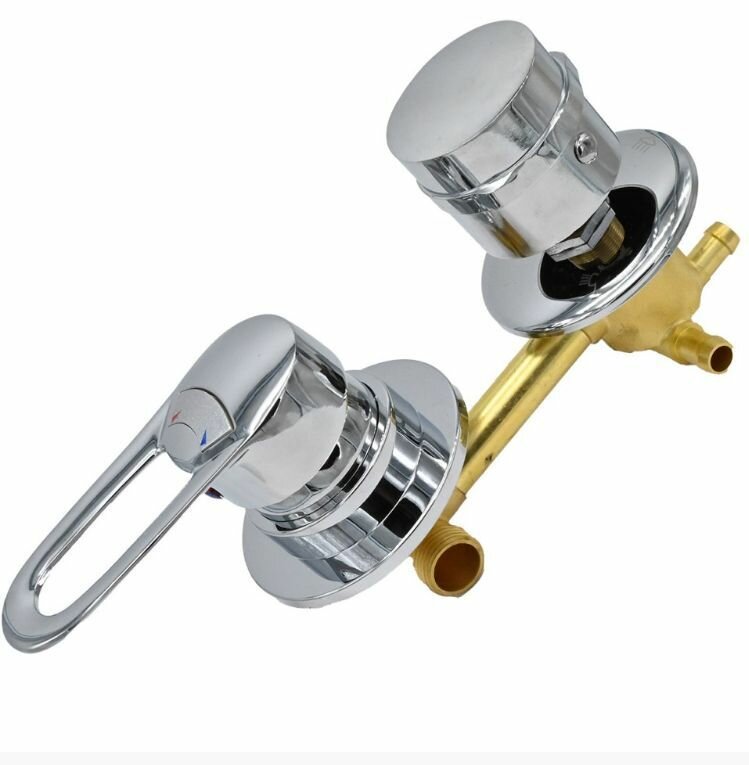 3* 120 Штуцер смеситель душевой кабины 3 режима переключения, ручки металлические, корпус крана латунный 120 мм под хомут, керамические картриджи с силиконовыми уплотнителями, цвет хром глянцевый интересное: