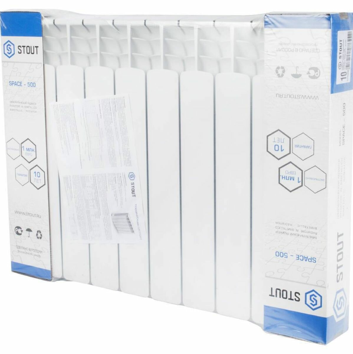 Stout Space 500 10 секций, радиатор биметаллический боковое подключение