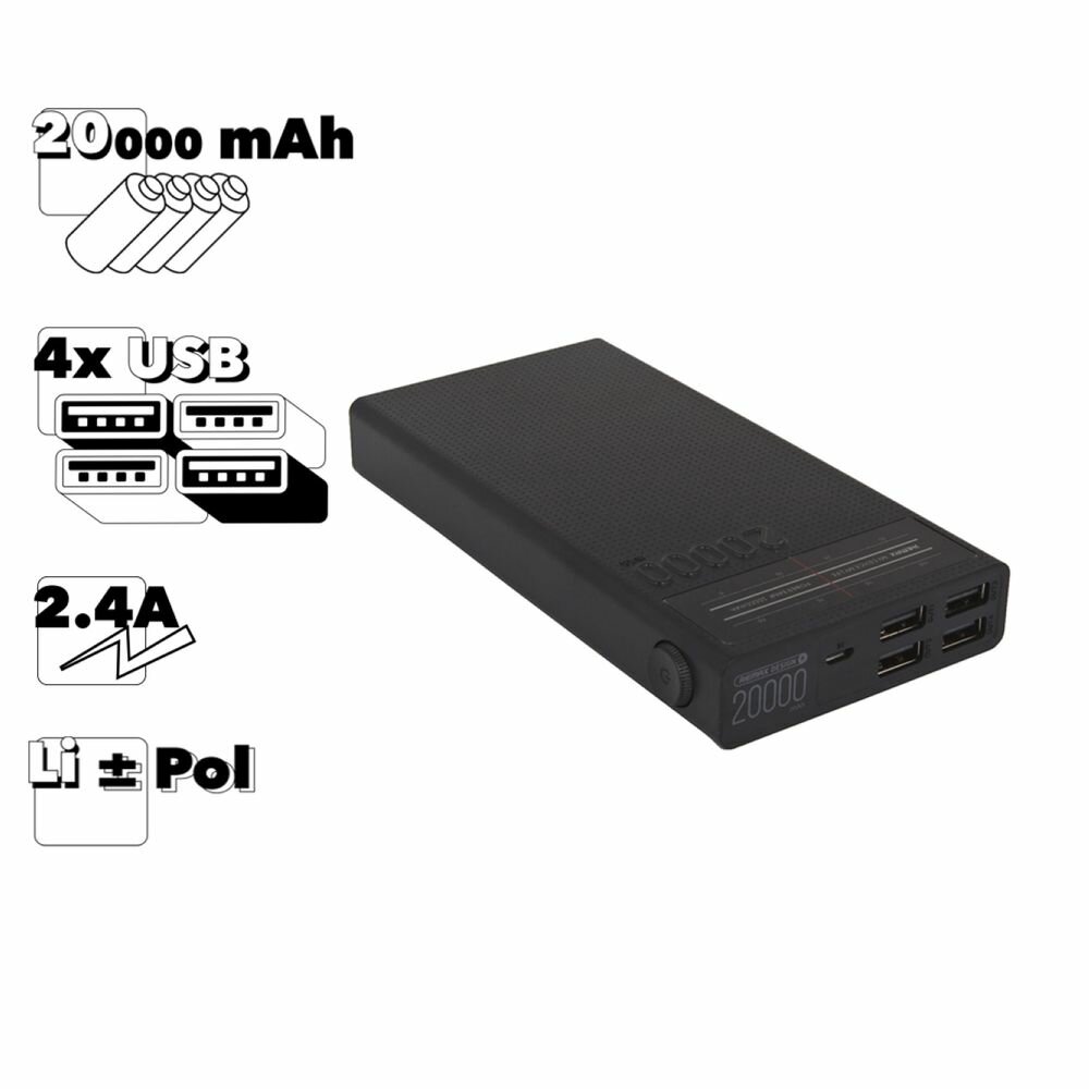 Внешний АКБ Remax Radio RPP-102 20000мАч, 4хUSB, 2.4 А, Li-Pol, черный
