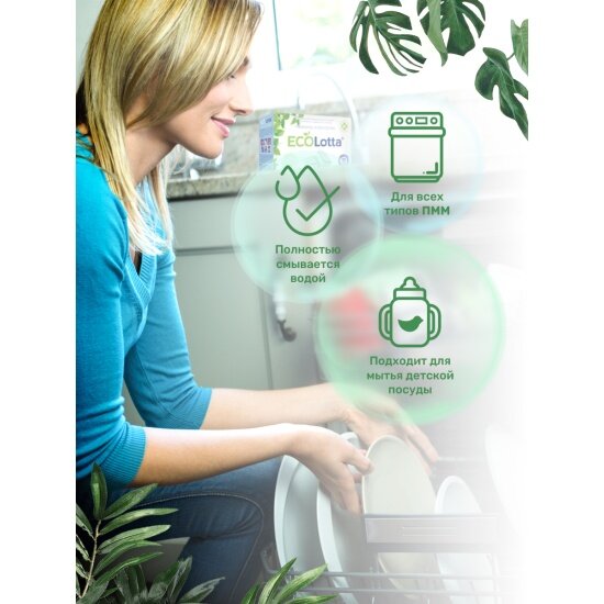 Эко таблетки для посудомоечной машины ECOLotta без фосфатов 100шт