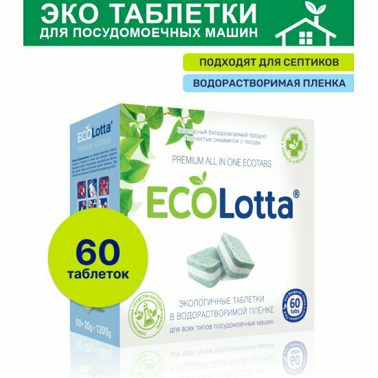 Таблетки для посудомоечной машины ECOLotta 20гр.Растворимая оболочка; 60 шт новинка