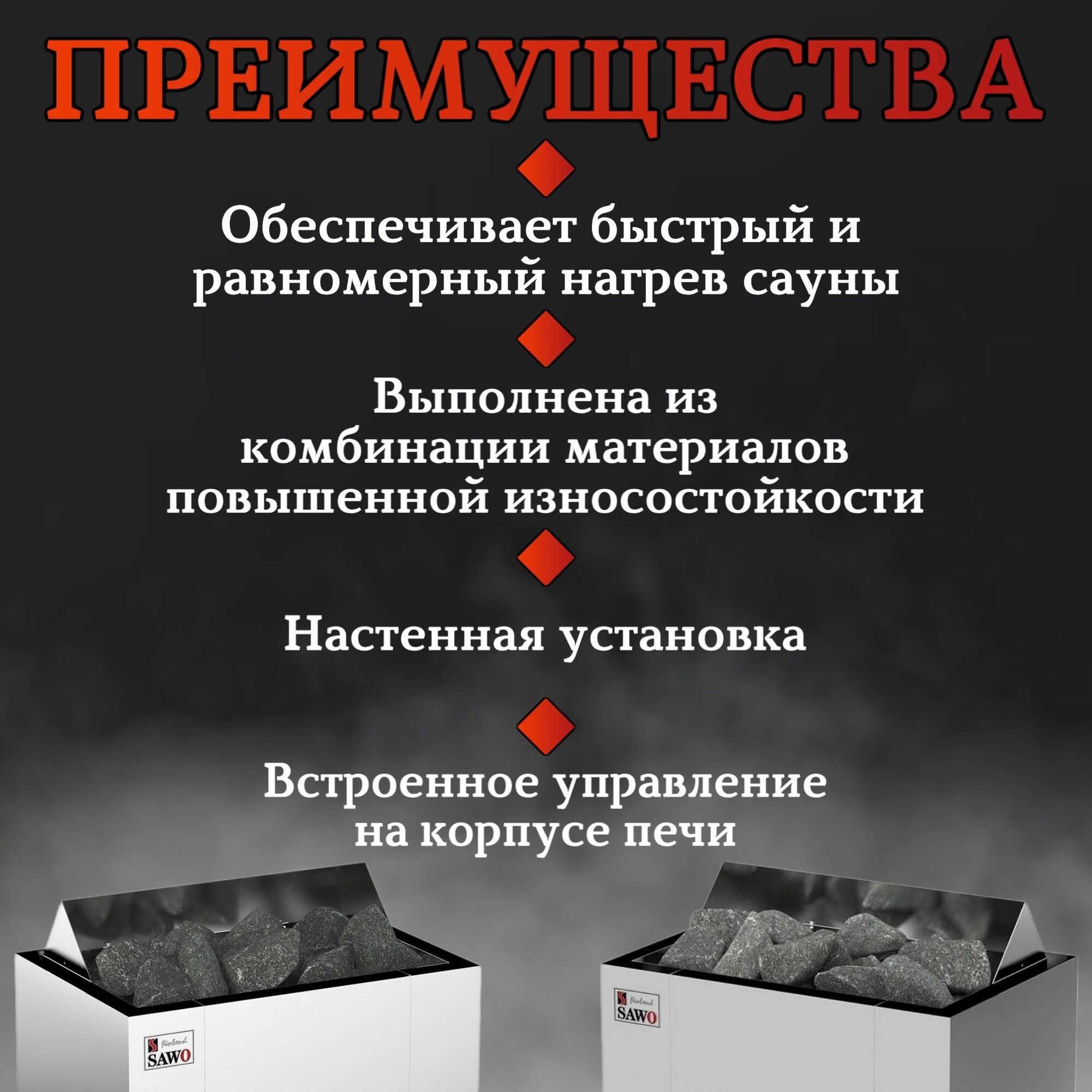 | Плюсы: | Хорошо нагревает помещение, парит тоже отлично |