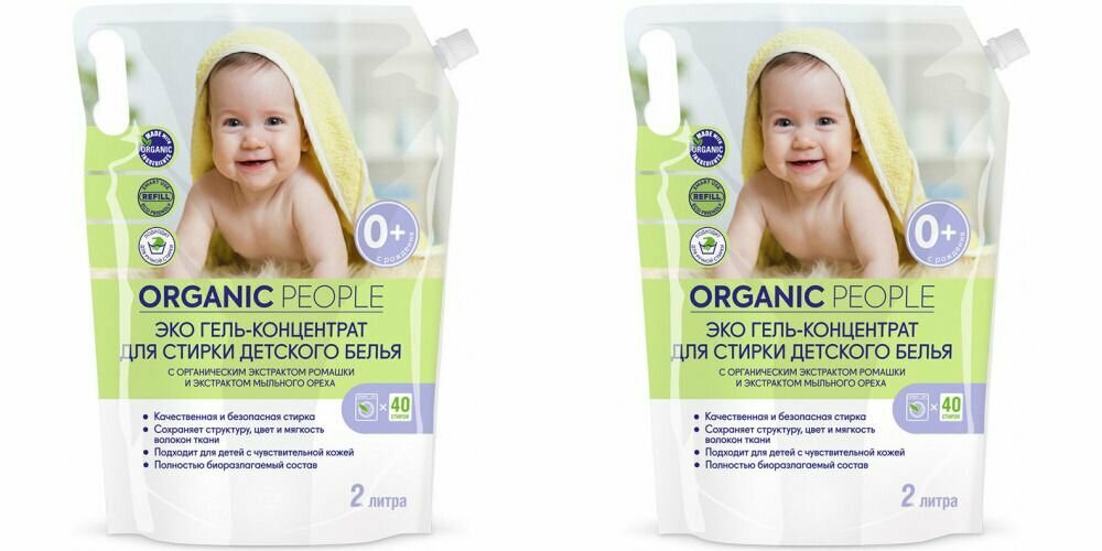 Organic People Эко-гель для стирки детского белья, дой-пак, 2000 мл, 2 шт. интересное: