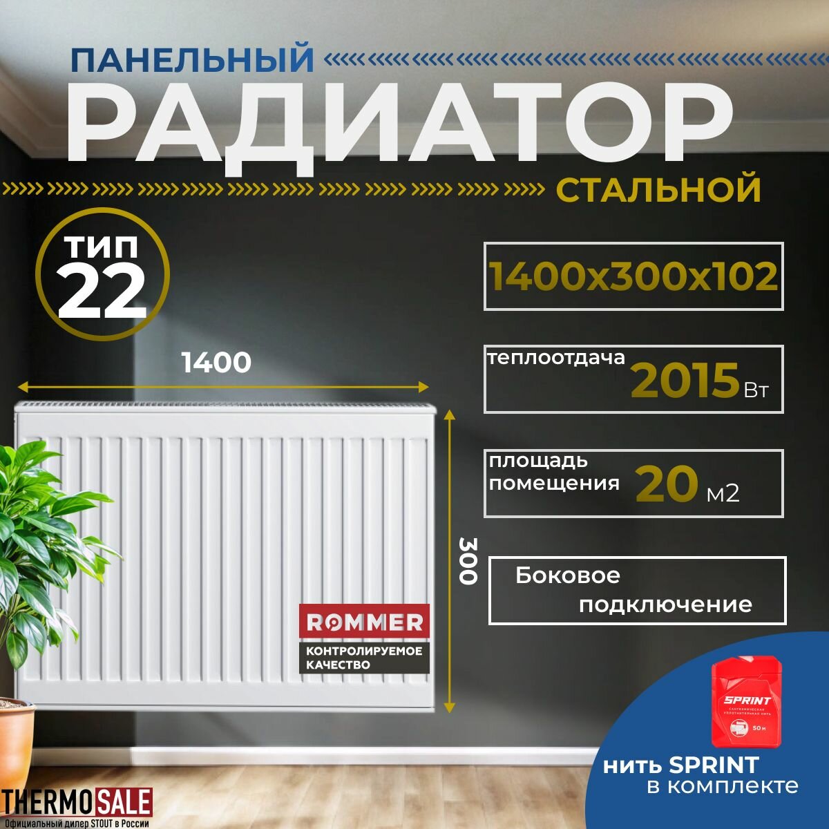 ROMMER 22/300/1400 радиатор стальной панельный боковое подключение Compact