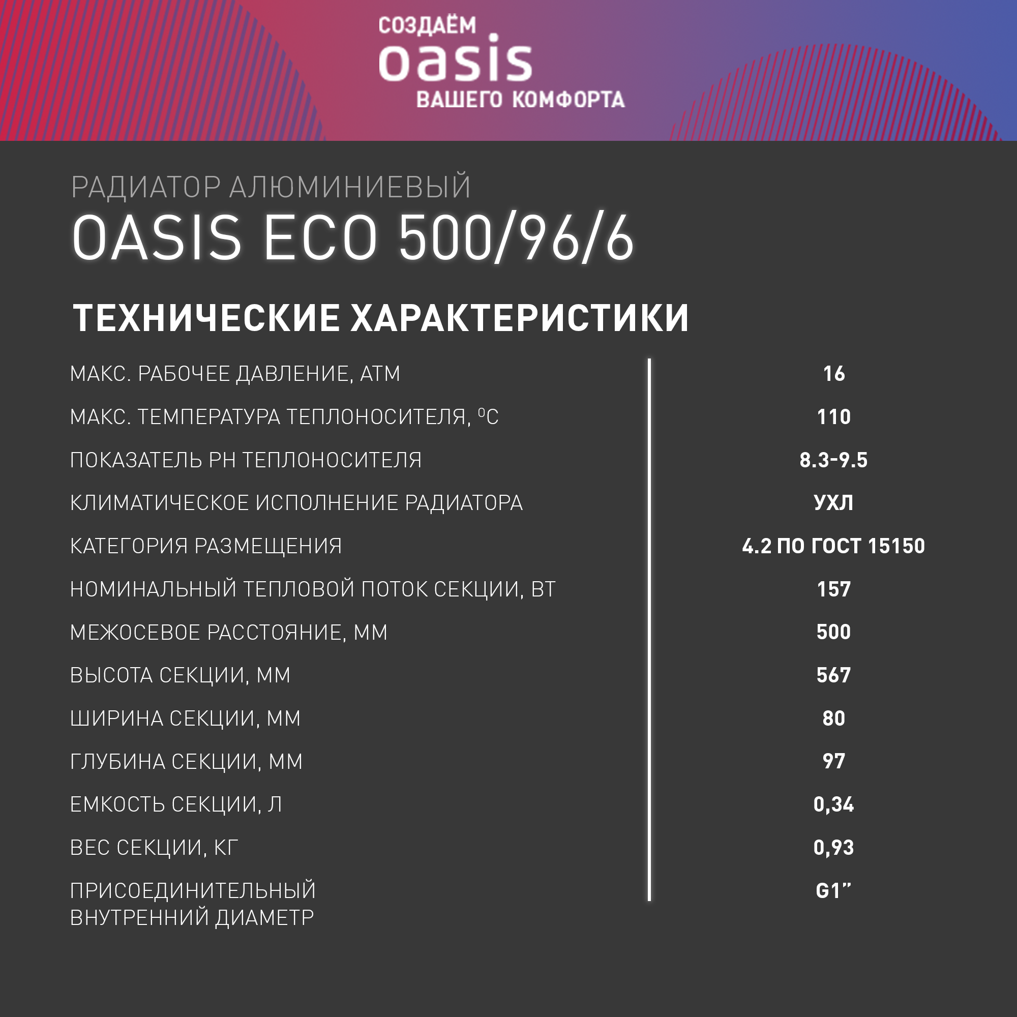 OASIS Радиатор алюминиевый ECO 500/80/6 4640039487074