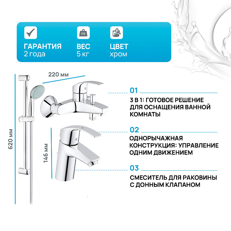 Готовый набор для ванны GROHE Eurosmart 2015 124446