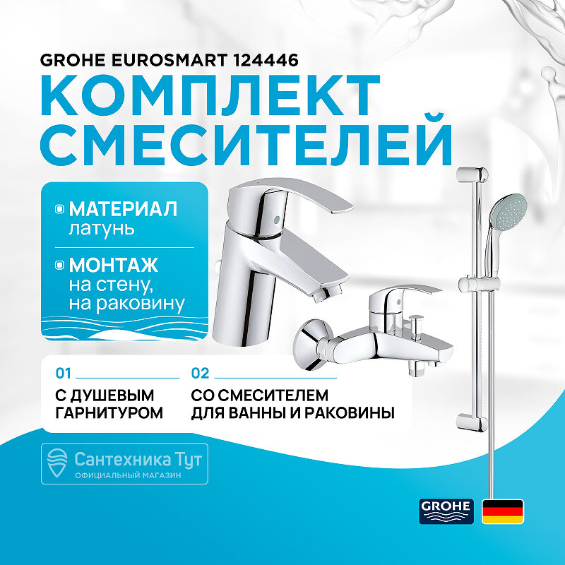 Набор смесителей для ванны, GROHE Eurosmart, с душевым гарнитуром, хром, (124446)