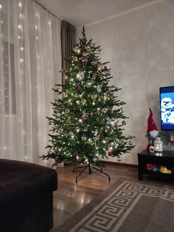 | Отзыв: | Отличная ёлка, полностью из литых иголок. Ствол и основания веток у ствола обмотаны ПВХ, но это плюс: не просвечает металл. После расправления веток и украшения ёлки это вообще не заметно. |
